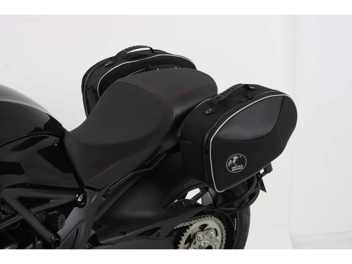 Sakwy boczne C-Bow do Ducati Diavel (2011-2018). Uchwyt na torby C-Bow jest przeznaczony do różnych toreb Hepco&Becker, w zależności od modelu motocykla. Za pomocą uchwytu C-Bow można przymocować do motocykla torby miękkie do sportowych, dynamicznych motocykli oraz sakwy do chopperów i cruiserów. Elegancki, dyskretny design idealnie wpasowuje się w ogólną linię pojazdu. Oczywiście, utrzymuje sakwy z dala od rozgrzanego tłumika. Nowoczesna technologia C-Bow pozwala na proste i łatwe przymocowanie odpowiednich toreb do C-Bow jednym kliknięciem, co zapewnia ich solidne zablokowanie, co zniechęca do kradzieży. Torby są bezpiecznie przymocowane do motocykla i pozostają na swoim miejscu nawet po załadowaniu. W wielu modelach kierunkowskazy pozostają w swojej pierwotnej pozycji. Więcej informacji można znaleźć w instrukcji obsługi. Specjalny bagażnik tylko do toreb i kufrów Hepco&Becker C-Bow Standardowy twardy bagaż Hepco&Becker nie pasuje do toreb Krauser K-Wing Wysokiej jakości wykończenie powierzchni Dostawa: prawa strona, lewa strona, zestaw montażowy, instrukcja Łatwy montaż Zwykle można łączyć z bagażnikami na kufry górne, sissybar lub bagażnikami solo (sprawdź instrukcję i informacje dotyczące konkretnego modelu motocykla) Powiększenie tylnego bagażnika może ograniczyć funkcjonalność toreb Zaprojektowane dla fabrycznego stanu maszyny. Nie testowano z akcesoriami takimi jak wydech, uchwyt tablicy rejestracyjnej lub inne kierunkowskazy. Używając akcesoriów innych firm, upewnij się, że torby są zawsze trzymane w odpowiedniej odległości od wydechu i że kierunkowskazy mają odpowiedni kąt wiązki. Strumień spalin nie może być skierowany na torby.
