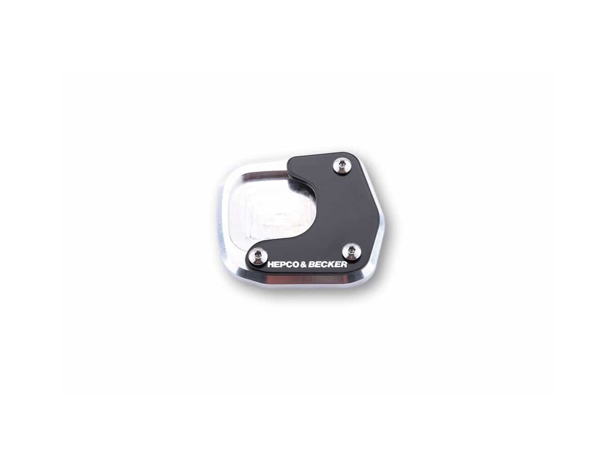 W pełni zapakowany lub na niestabilnym podłożu motocykl grozi łatwym zapadnięciem się na stopce bocznej. Precyzyjnie wyprofilowana, frezowana płyta rozporowa, którą można szybko przykręcić do stopki bocznej i uwolnić od tego zagrożenia, jest już dostępna! Ponad 100% większa powierzchnia. Bezpieczne ustawienie maszyny na wszystkich powierzchniach. Anodowane na czarno, odporne na utlenianie.