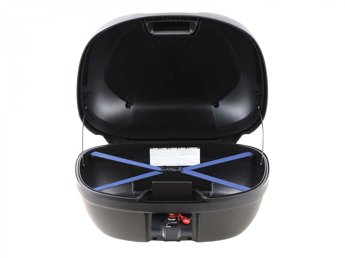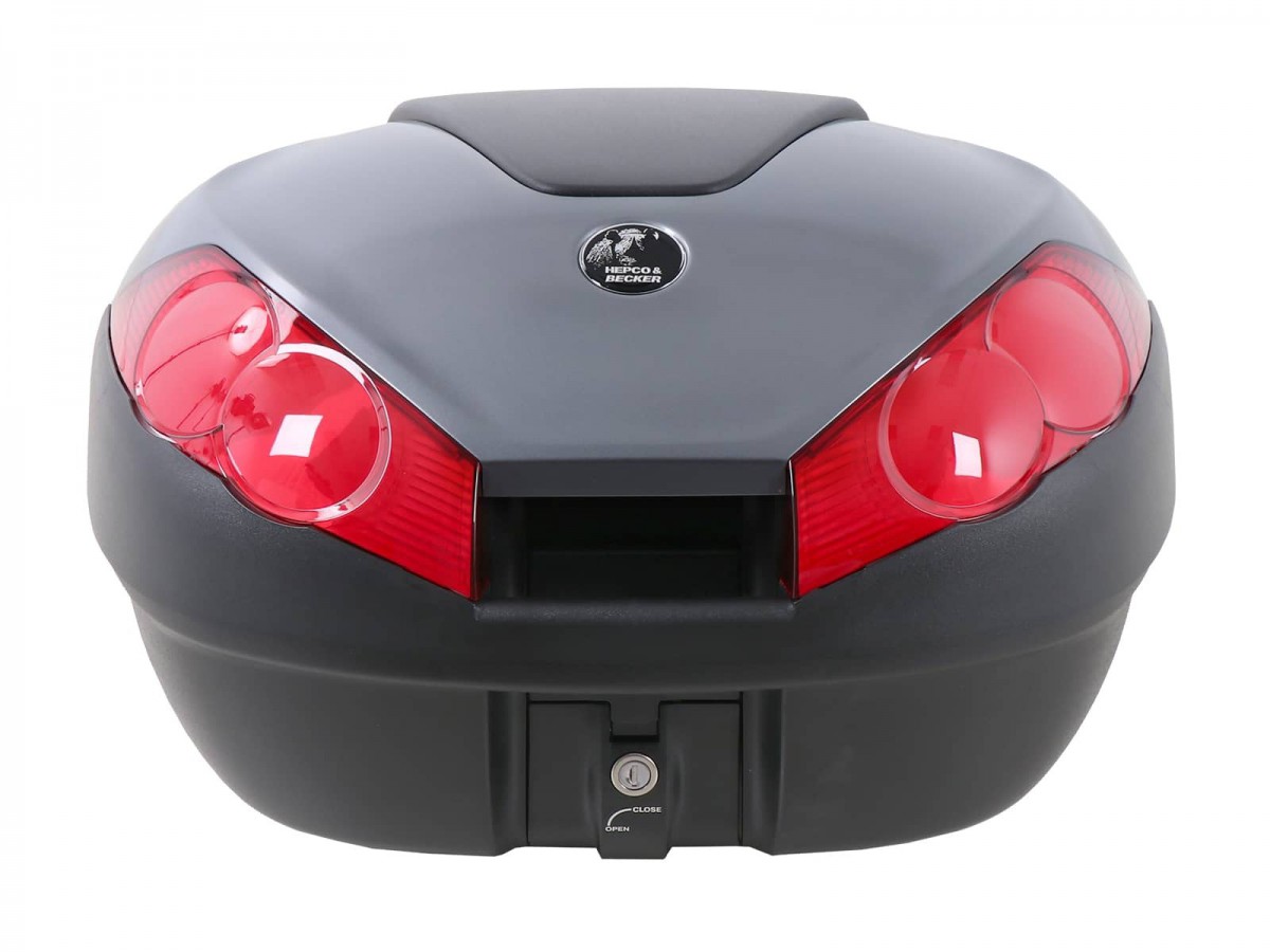 Kufer centralny Hepco&Becker Journey 52: mieści dwa kaski, jest wodoodporny dzięki specjalnemu uszczelnieniu, skorupa kufra wykonana jest z niezwykle odpornego na uderzenia tworzywa sztucznego, pasuje do bagażników H&B Aluracks, Easyracks i Tube, zalecane obciążenie: 5 kg do kufra centralnego (sprawdź informacje dotyczące konkretnego modelu bagażnika w celu uzyskania informacji o ograniczeniach), dostępne oparcie, poręcz i torba wewnętrzna