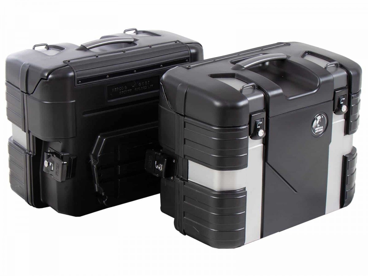 GOBI to odpowiedź na wszystkie pytania po 35 latach rozwoju i produkcji kufrów motocyklowych. Celem rozwoju było stworzenie bardziej wytrzymałej alternatywy dla kufrów wykonanych z czystego aluminium. W przypadku kufrów wykonanych z czystego aluminium nadproże zwykle wiąże się z uszkodzeniami, które prowadzą do ograniczeń funkcjonalnych. Kufer GOBI firmy Hepco&Becker wykonany jest z odpornego na uderzenia, barwionego tworzywa sztucznego. Specjalna skorupa o podwójnych ściankach jest wyjątkowo odporna, wodoodporna i pochłania uderzenia oraz niepożądane kontakty z podłożem. Stabilność przyczynia się również do tego, że kufer GOBI jako kufer ładowany od góry składa się z jednego elementu z pokrywą, a nie z dwóch oddzielnych skorup. Kolejną zaletą kufra ładowanego od góry jest to, że ponieważ jest ładowany od góry, nic nie może wypaść podczas otwierania. Gobi: klasa referencyjna dla ekstremalnych podróżników, a także do codziennego użytku. Kufer ładowany od góry – klasa referencyjna dla ekstremalnych podróżników. Specjalna tacka o podwójnych ściankach. Wykonana z odpornego na uderzenia, barwionego tworzywa sztucznego. Absolutnie wodoodporna dzięki specjalnej uszczelce. Kufer boczny o grubości ok. Zbiornik na płyn 3,5 l między skorupamiStabilne metalowe zamkiWalizka z mocnym zamkiem do przymocowania do bagażnikaSzeroki wybór dostępnych akcesoriówZalecane obciążenie: 10 kg na walizkę (sprawdź informacje dotyczące ograniczeń konkretnego modelu bocznego bagażnika)Do wszystkich bagażników bocznych Hepco & BeckerW zestawie kluczyki i zamkiKask nie mieści się w bocznej walizceZestaw bagażowy składający się z prawej / lewej stronyMożliwość dostarczenia do istniejących kufrów górnych