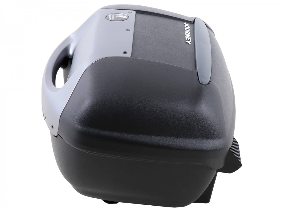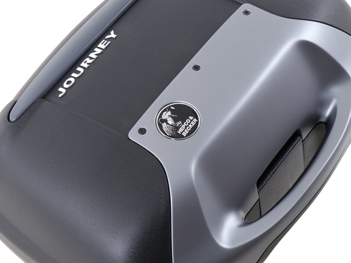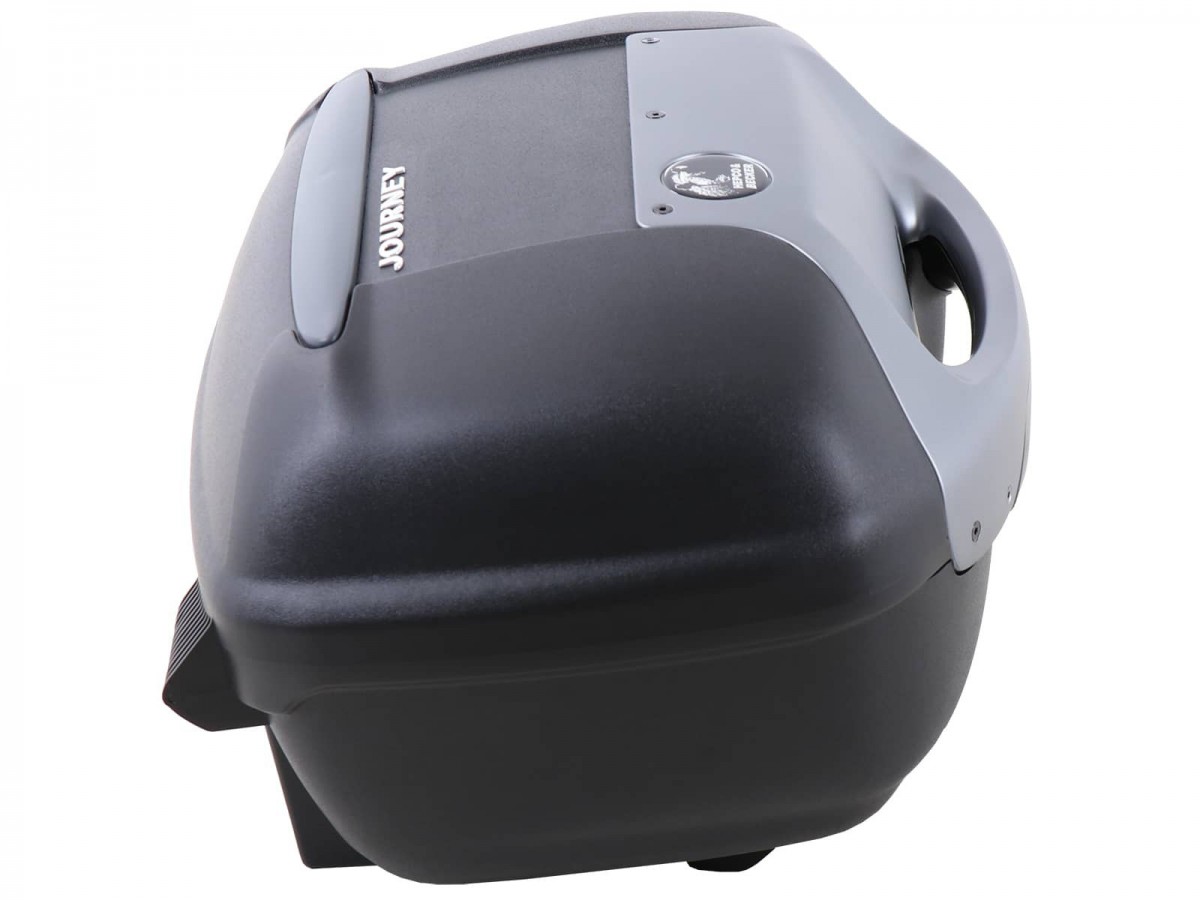 Kufer centralny Hepco&Becker Journey 42: mieści 1 kask i kilka drobiazgów, jest wodoodporny dzięki specjalnemu uszczelnieniu, skorupa kufra wykonana jest z bardzo odpornego na uderzenia tworzywa sztucznego, pasuje do bagażników H&B Aluracks, Easyracks i Tube, zalecane obciążenie: 5 kg do kufra centralnego (sprawdź informacje dotyczące konkretnego modelu bagażnika w celu uzyskania informacji o ograniczeniach), dostępne oparcie, reling i torba wewnętrzna