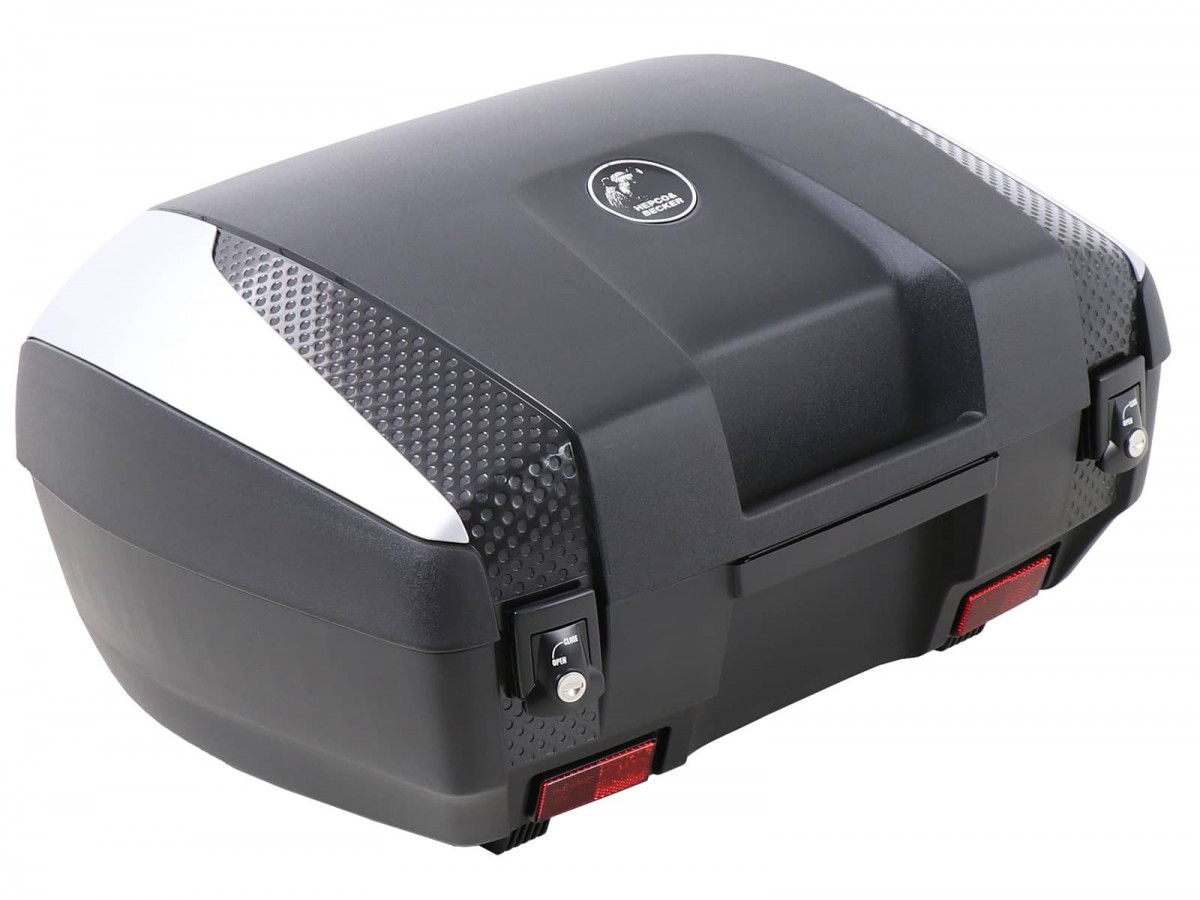 Klasyczna seria Hepco&Becker: kufer centralny Junior 55! całkowicie wodoodporny dzięki specjalnej gumowej uszczelce wyjątkowo odporne na uderzenia plastikowe skorupy zapewniające absolutną wytrzymałość dostępne torby wewnętrzne, oparcie i reling pasuje do wszystkich bagażników kufrów centralnych Hepco&Becker (Alurack, Easyrack, bagażnik rurowy) mieści 2 kaski zalecane obciążenie: 5 kg (sprawdź informacje o konkretnym modelu bagażnika w celu zapoznania się z ograniczeniami) w zestawie klucze i zamki