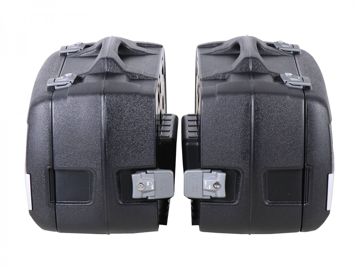 Od wielu lat niekwestionowany mistrz sprzedaży – zawsze wychodzi na prowadzenie w testach porównawczych. Nasza seria kufrów Hepco&Becker Junior. Nie ma znaczenia, którą wersję i rozmiar wybierzesz: ta seria kufrów – zaprojektowana przez Target – jest dopasowana do Twoich potrzeb. Wytrzymała i niezwykle wytrzymała dzięki podwójnej konstrukcji ścianek, wytrzymuje twarde lądowania, chroni zawartość nawet podczas drobnych wstrząsów i jest wodoszczelna. Boczna pokrywa kufra sprawia, że ​​jest on optymalny do załadunku. Dwa mocne pasy napinające utrzymują zawartość na miejscu nawet po otwarciu. Pasuje do bagażnika kufra bocznego Hepco&Becker. Całkowicie wodoszczelne metalowe zamki z wkładką bębenkową i kluczami. Zalecane obciążenie: 10 kg na kufer (prosimy o sprawdzenie informacji o konkretnym modelu w celu uzyskania informacji o ograniczeniach). Dostawa: prawa strona + lewa strona + klucze i zamki.