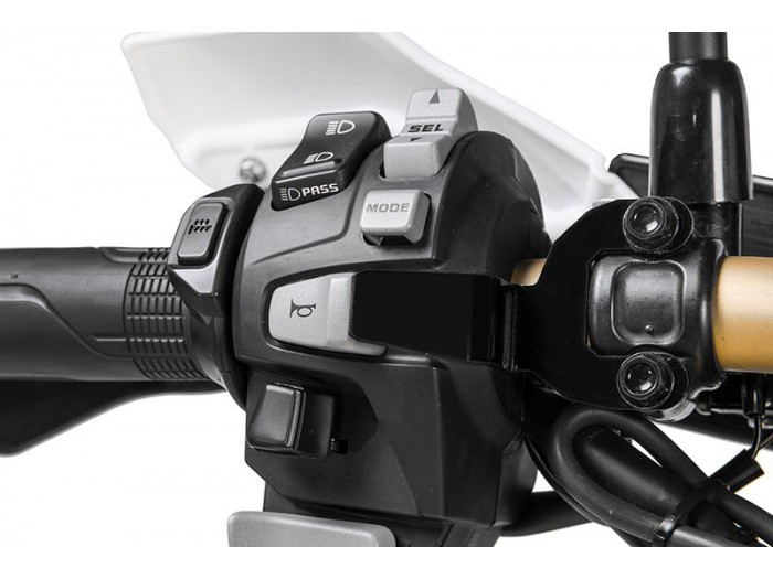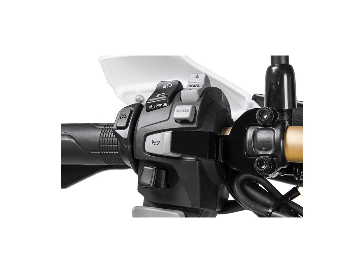 Przy całkowicie zapakowanej torbie na zbiornik paliwa i kierownicy obróconej prawie do końca, przycisk klaksonu zostaje wciśnięty przypadkowo.