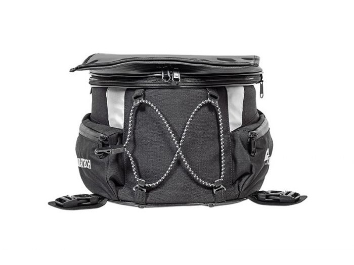 Torba na zbiornik wykonana jest z wysokiej jakości, certyfikowanej Cordury. Elastyczne sznurki z szybko odpinanymi zapięciami, markowe zamki błyskawiczne YKK i elementy odblaskowe 3M dopełniają wysokiej jakości funkcje.