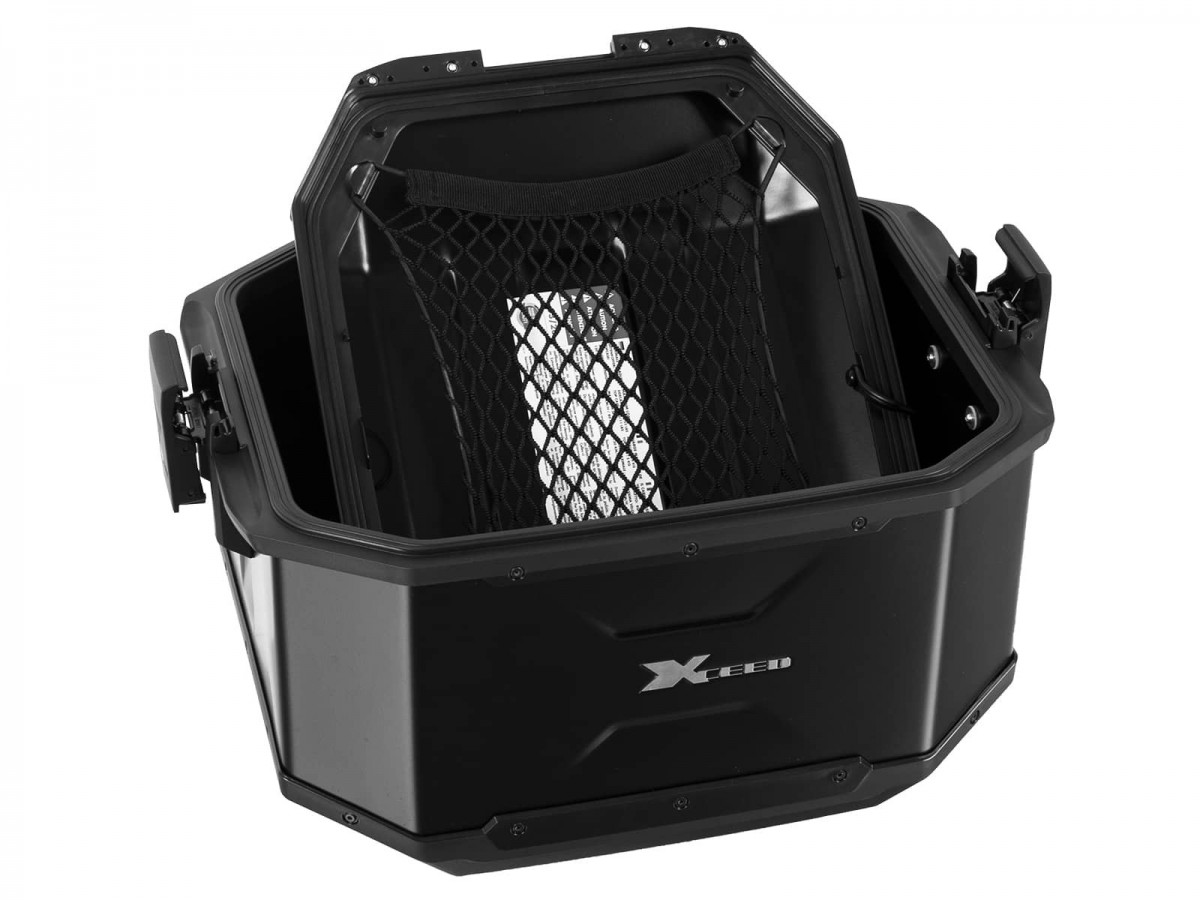 fakty: całkowicie wodoodporny dzięki specjalnej uszczelce klejonej z anodyzowanej blachy aluminiowej o grubości 1,5 mm dwustronnie otwierana pokrywa całkowicie zdejmowana pokrywa części z tworzywa sztucznego odpornego na uderzenia, w tym siatka bagażowa w pokrywie wewnątrz, w tym klucz i cylinder zamka pasuje do wszystkich bagażników dachowych Hepco & Becker Alurack, Easyrack lub rurowych (w sprawie ograniczeń prosimy zapoznać się z konkretnymi modelami bagażników) miejsce na kask kufry boczne i centralne dostępne za pomocą jednego klucza (prosimy o podanie go w polu wyboru przy składaniu zamówienia) szczegóły: waga: 4,8 kg zalecana ładowność: 5 kg (należy zapoznać się z instrukcją obsługi bagażnika dotyczącą konkretnego pojazdu, a także informacjami producenta motocykla dotyczącymi ograniczeń)