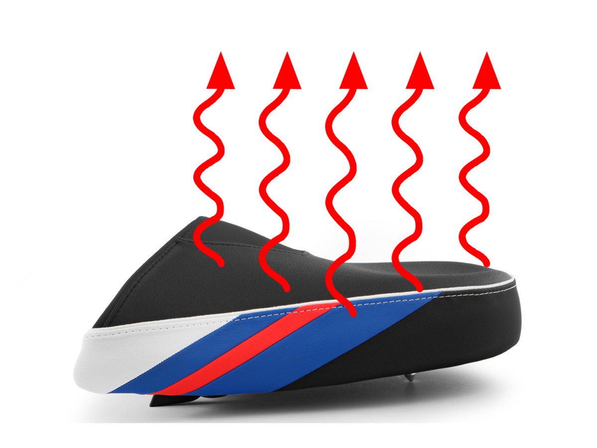 Redukujący pot, przyczepny materiał wierzchni w połączeniu z zakładkami z Alcantary, obniżone szwy „Cut”