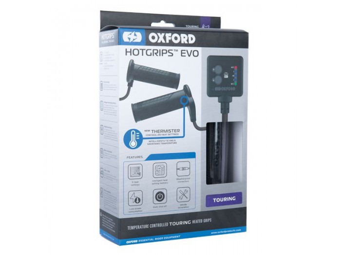 OXFORD MANETKI PODGRZEWANE DO MOTOCYKLA EVO TOURING Z PANELEM STERUJĄCYM I TERMOSTATEM DO KIEROWNICY 22MM DŁUGOŚĆ 110-120MM (EL)