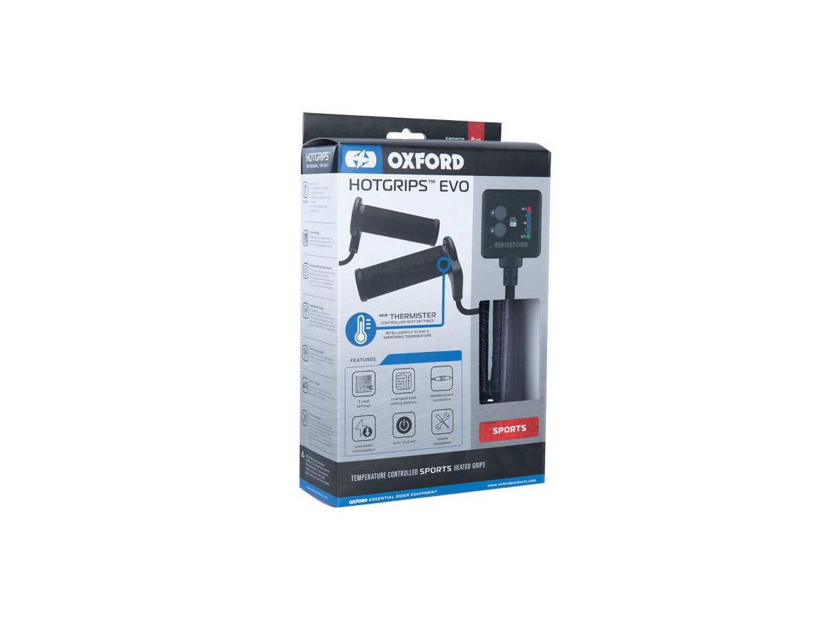 OXFORD MANETKI PODGRZEWANE DO MOTOCYKLA EVO SPORT Z PANELEM STERUJĄCYM I TERMOSTATEM DO KIEROWNICY 22MM DŁUGOŚĆ 114-123MM (EL)