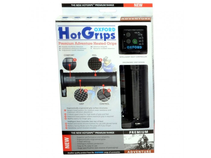 OXFORD MANETKI PODGRZEWANE PREMIUM ADVENTURE DO MOTOCYKLA Z PANELEM STERUJĄCYM V8 DO KIEROWNICY 22MM DŁUGOŚĆ 122-132MM (EL)