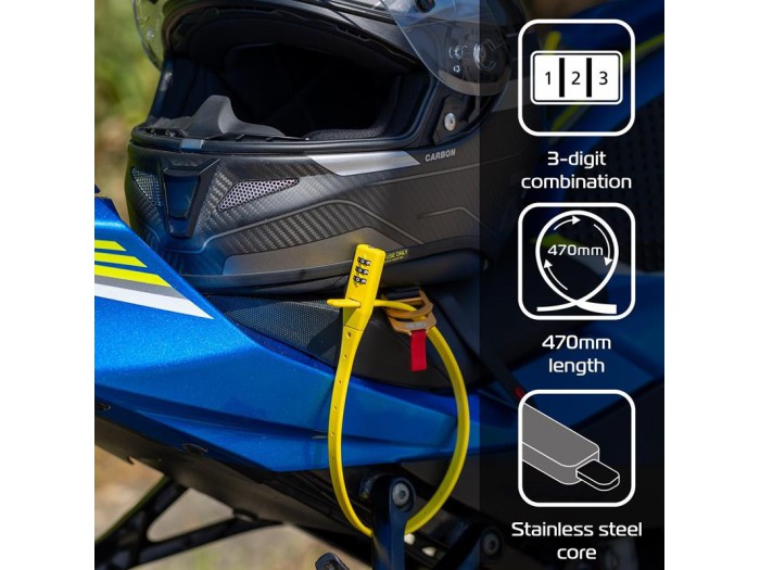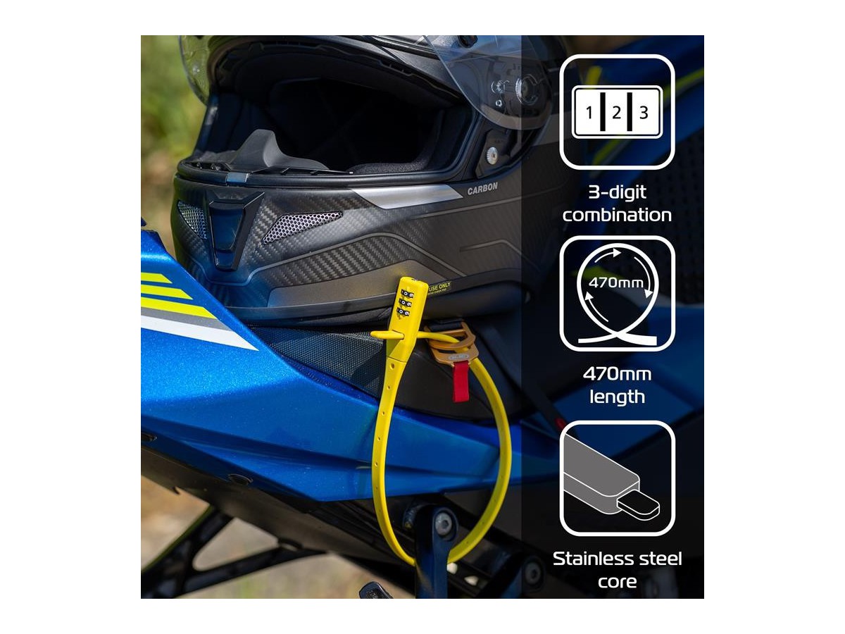 OXFORD ZABEZPIECZENIE ANTYKRADZIEŻOWE COMBI DO KASKU, ROWERU ITD. KOLOR ŻÓŁTY FLUO (ZAMKNIĘCIE NA SZYFR)