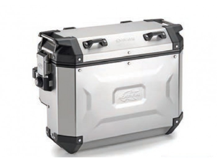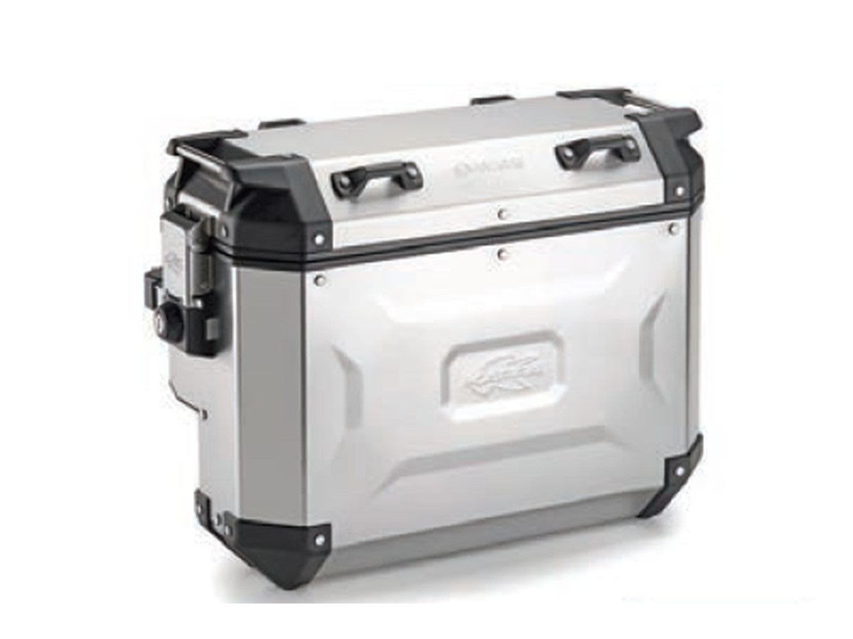 Kufer boczny, prawy, aluminiowy wycięty: Mocowanie typu Monokey, Cam Side Maksymalne obciążenie do 10kg Wymiary: szer. 49,5 cm, wys. 38,7 cm, gł. 24,6 cm Wyposażenie: 4 uchwyty bagażowe, plastikowe osłony narożników kufra i 2 metalowe uchwyty do podnoszenia kufra. Pasujące akcesoria : Zestaw do montażu aluminiowych bidonów termicznych (E162K), wewnętrzna torba 35L bagażowa (TK768), pasy do mocowana bagażu na kufer (KS350) Pojemność: 33 L Dostępny w kolorze czarnym (KVGS33BR) Kolor srebrny