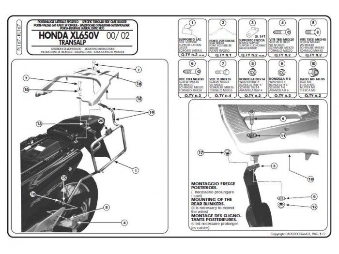 KAPPA STELAŻ KUFRÓW BOCZNYCH MONOKEY HONDA XL 650V TRANSALP (00-07) - RÓWNIEŻ POD KUFRY MONOKEY RETRO-FIT KVE K'VENTURE ALU ORAZ