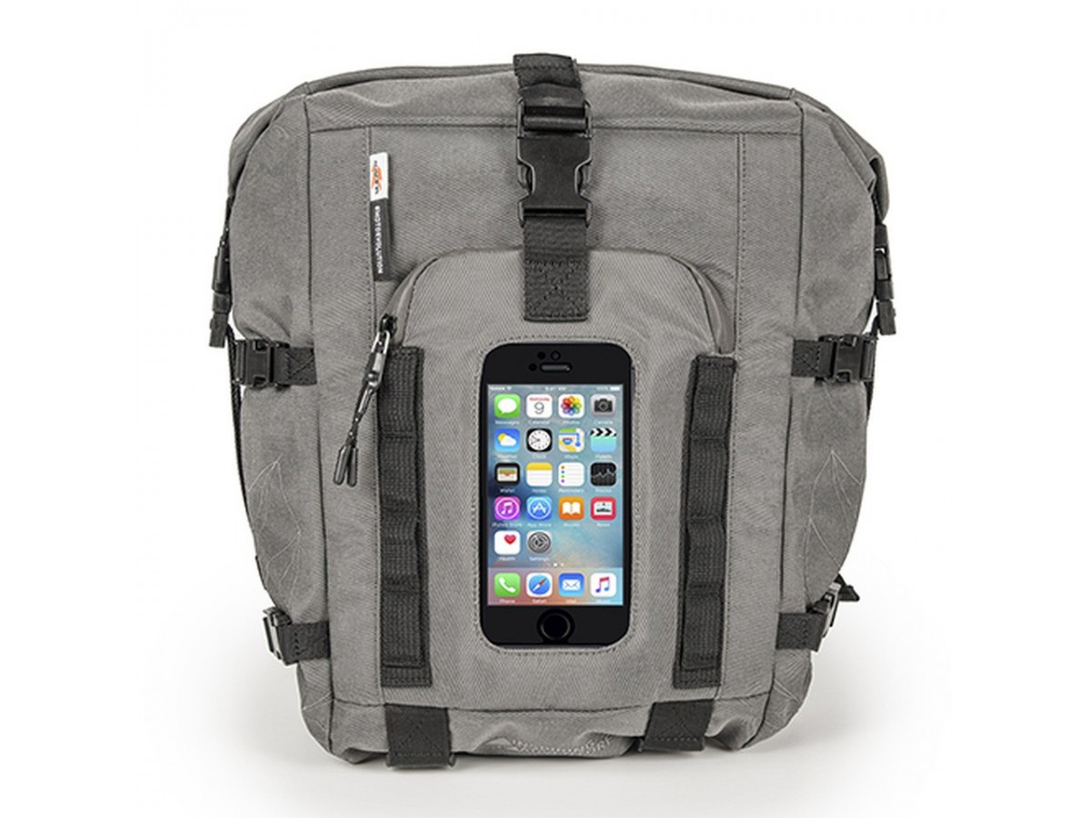 Torba na zbiornik: montowana przy pomocy 4 magnesów wykonana z wodoodpornego materiału z właściwościami anty-UV wodoszczelne zamknięcie przezroczysta kieszeń na smartfona 24x18 cm przednia kieszeń na małe przedmioty regulowanie objętości za pomocą pasków odblaskowe elementy uchwyt do przenoszenia możliwość noszenia jako plecak oddychający, miękki materiał z tyłu torby wymiary: szer. 25 cm, wys. 39 cm, gł, 21 cm pojemność: 20 L Kolor szary (dostępna również w kolorze czarnym RA315BK) Pasujące akcesoria: RA317 (torba, może zostać zamontowana przy pomocy systemu M.O.L.L.E.)