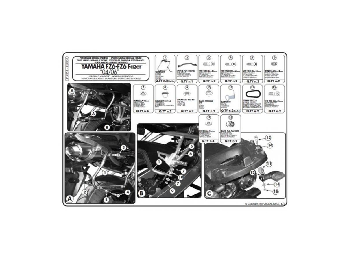 KAPPA STELAŻ KUFRÓW BOCZNYCH MONOKEY SIDE YAMAHA FZ6 / FAZER (04-06) - TYLKO POD KUFRY K33N K'ROAD