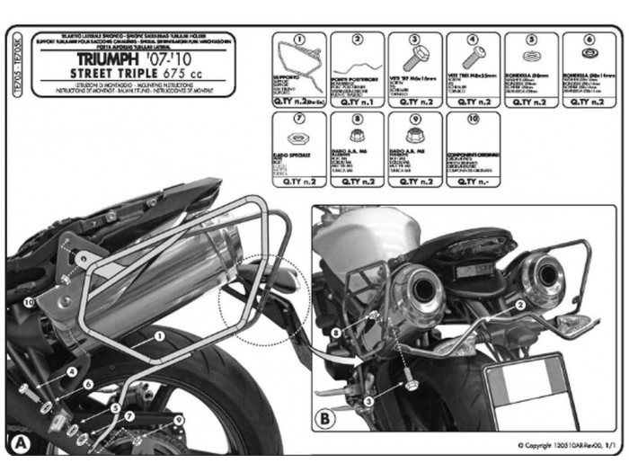 KAPPA STELAŻ POD TORBY (SAKWY) BOCZNE TRIUMPH Street Triple 675 (07-12) - RÓWNIEŻ POD KUFRY RA314 EASY LOCK