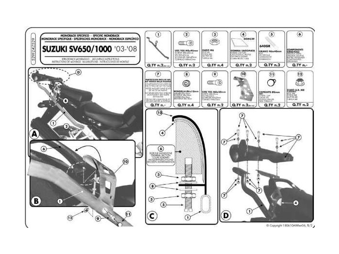 KAPPA STELAŻ KUFRA CENTRALNEGO SUZUKI SV 650 / S (03-08) ( BEZ PŁYTY )