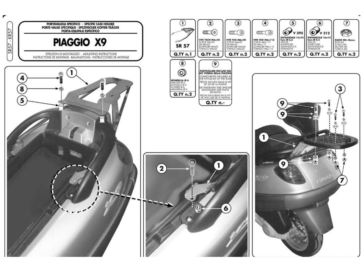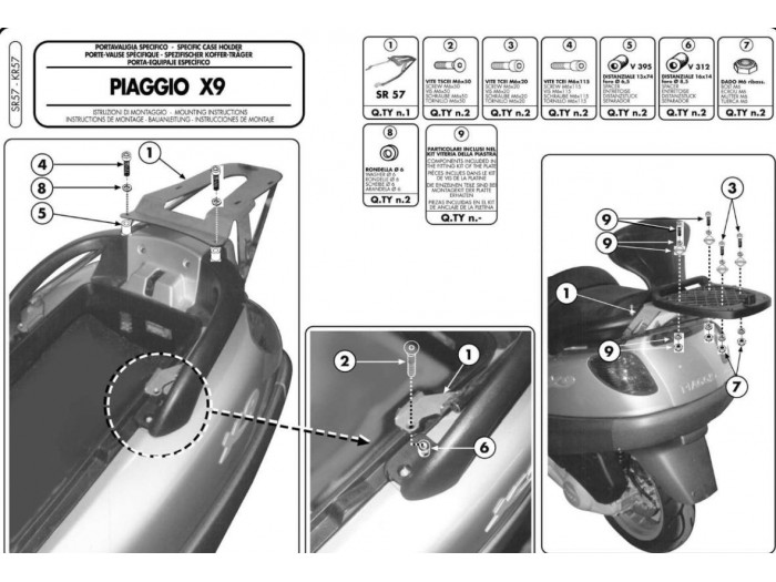 KAPPA STELAŻ KUFRA CENTRALNEGO PIAGGIO X9 125-180-250 (00-02), X9 200-250-500 Evolution (03-08), X9 500 (01-02) ( BEZ PŁYTY )