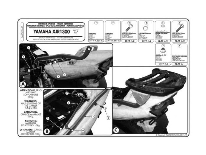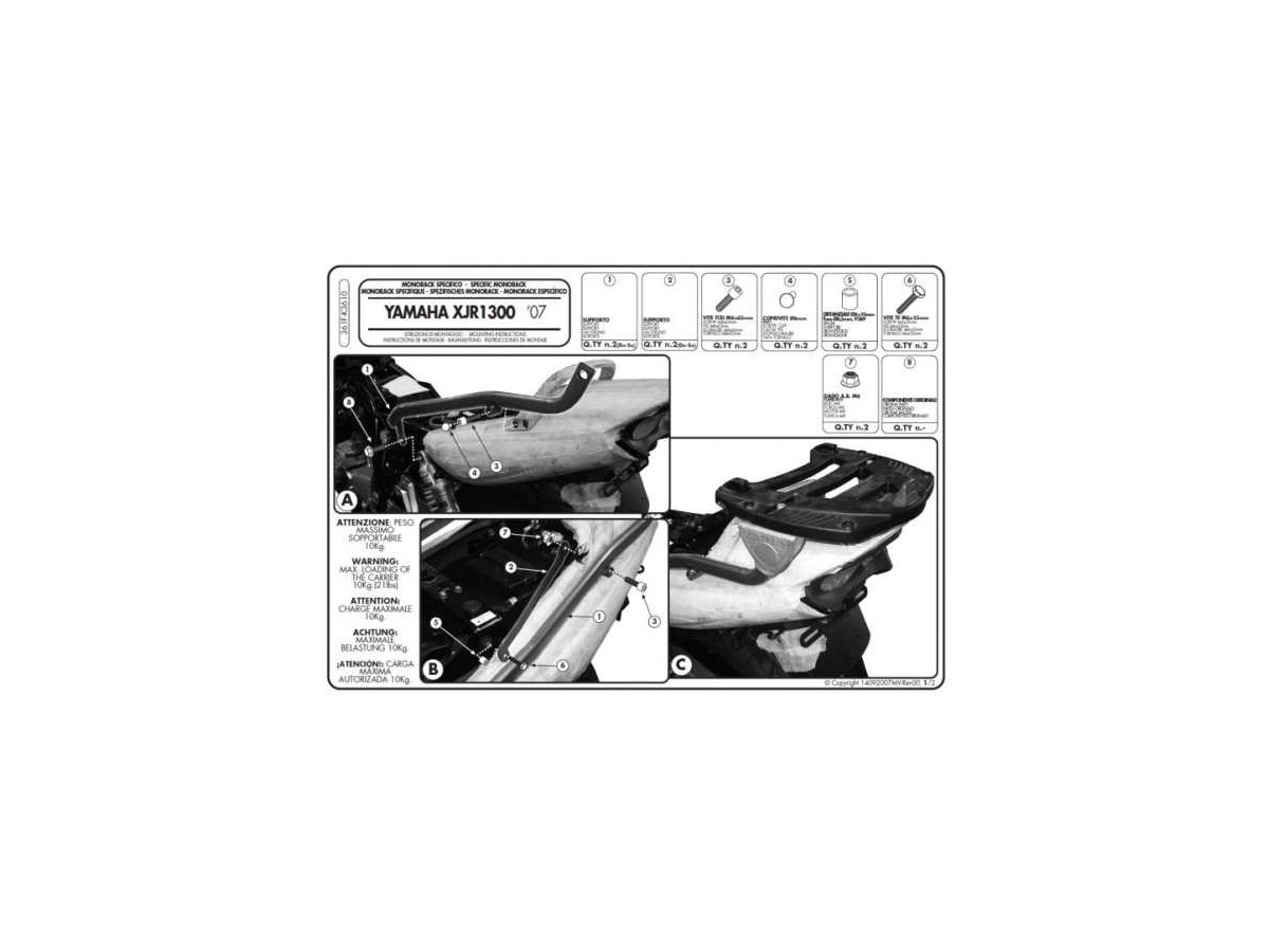 KAPPA STELAŻ KUFRA CENTRALNEGO YAMAHA XJR 1300 (07-14) ( BEZ PŁYTY )