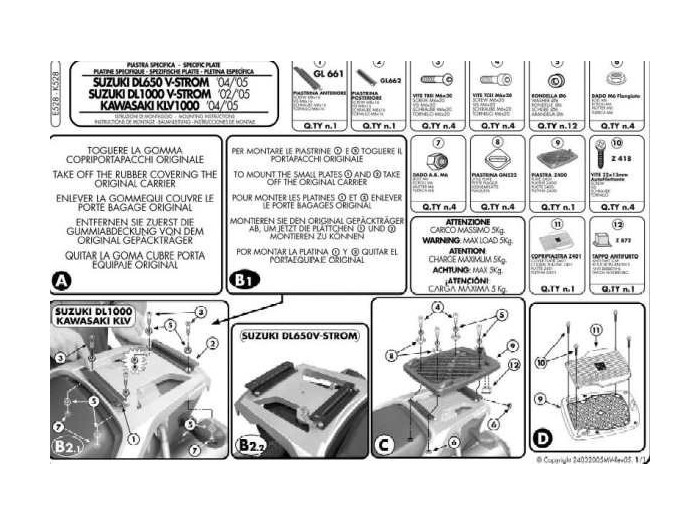 KAPPA STELAŻ KUFRA CENTRALNEGO SUZUKI DL 650 V-STROM (04-11), DL 1000 V-STROM (02-11) ( Z PŁYTĄ MONOKEY ) - ZAMIENNY Z K528-2