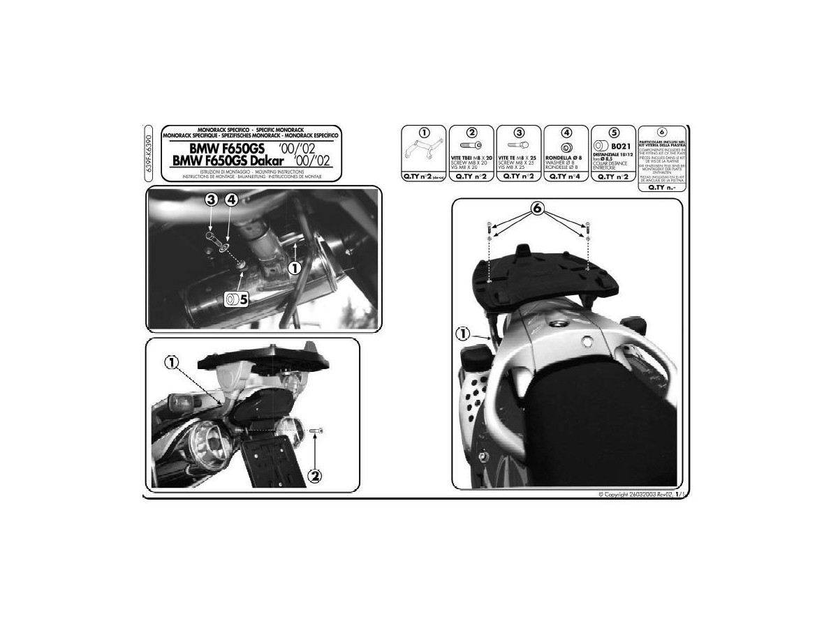 KAPPA STELAŻ KUFRA CENTRALNEGO BMW F 650GS (00-03), F 650GS DAKAR (00-03) ( BEZ PŁYTY )