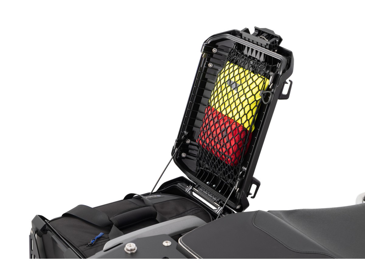 Idealna do przechowywania wszystkiego, co powinno być szybko dostępne w podróży – odzieży przeciwdeszczowej, apteczki lub narzędzi, które można umieścić w pokrywie oryginalnych aluminiowych kufrów lub kufra centralnego BMW R 1300 GS i GS Adventure, aby były natychmiast dostępne po otwarciu.