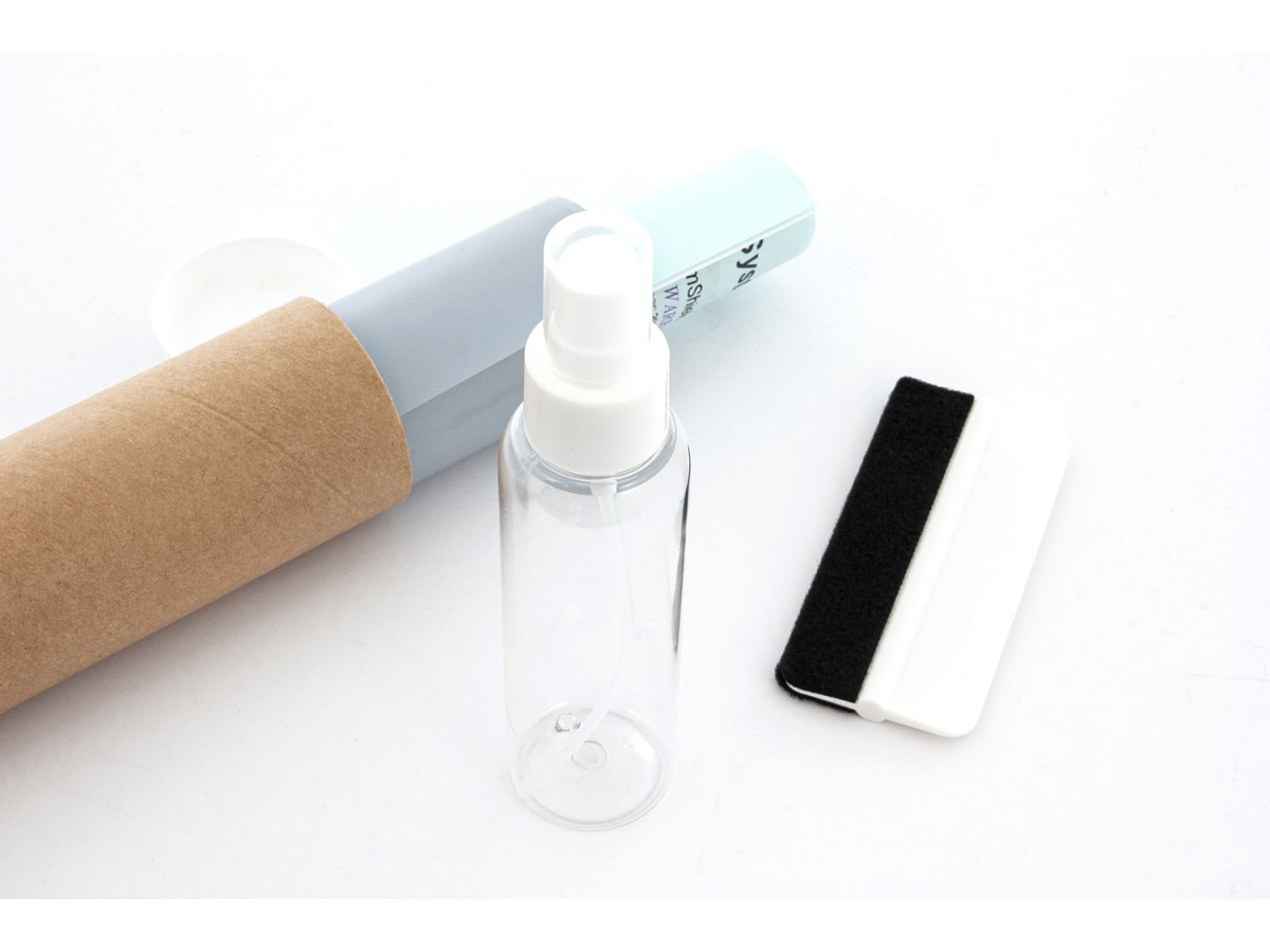 Zestaw zawiera: butelkę z rozpylaczem, raklę oraz szczegółową instrukcję montażu.