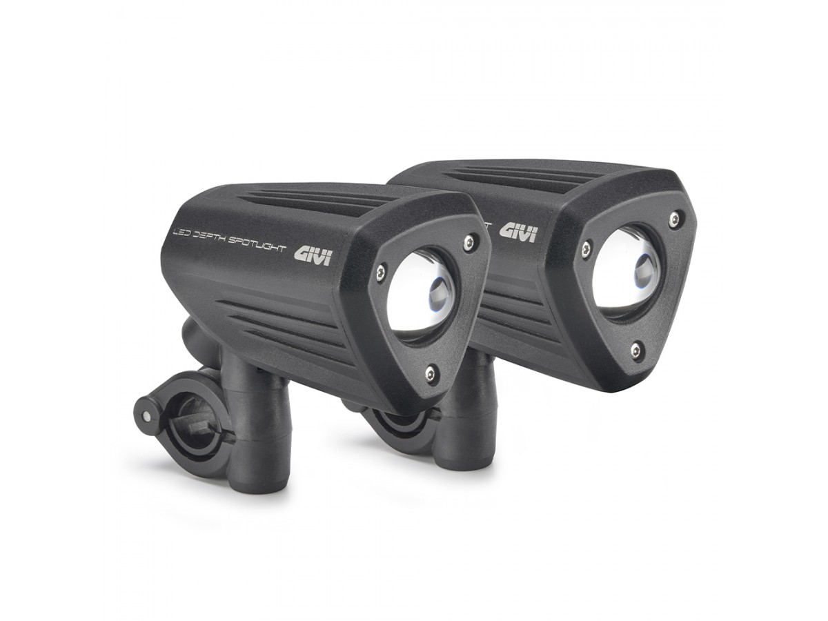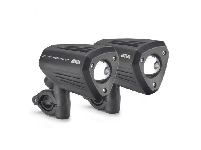 Nowe reflektory pomocnicze GIVI charakteryzują się konstrukcją z malowanego na czarno aluminium, praktycznym i poręcznym designem oraz łatwym montażem na wszystkich osłonach silnika i uchwytach o średnicy od 21 do 25 mm.