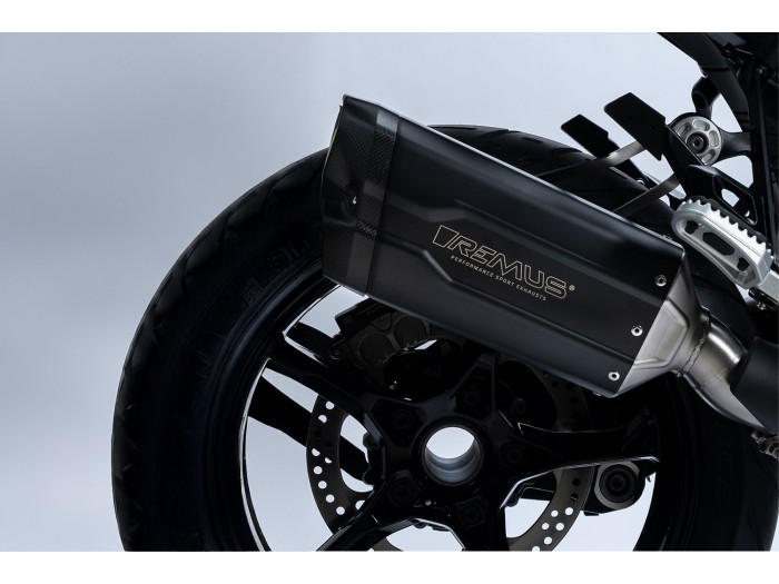 Tłumik REMUS 8 Slip-On, wykonany z wysokiej jakości matowej stali nierdzewnej, zapewnia zwiększoną moc i moment obrotowy oraz został zaprojektowany z myślą o optymalizacji wagi.