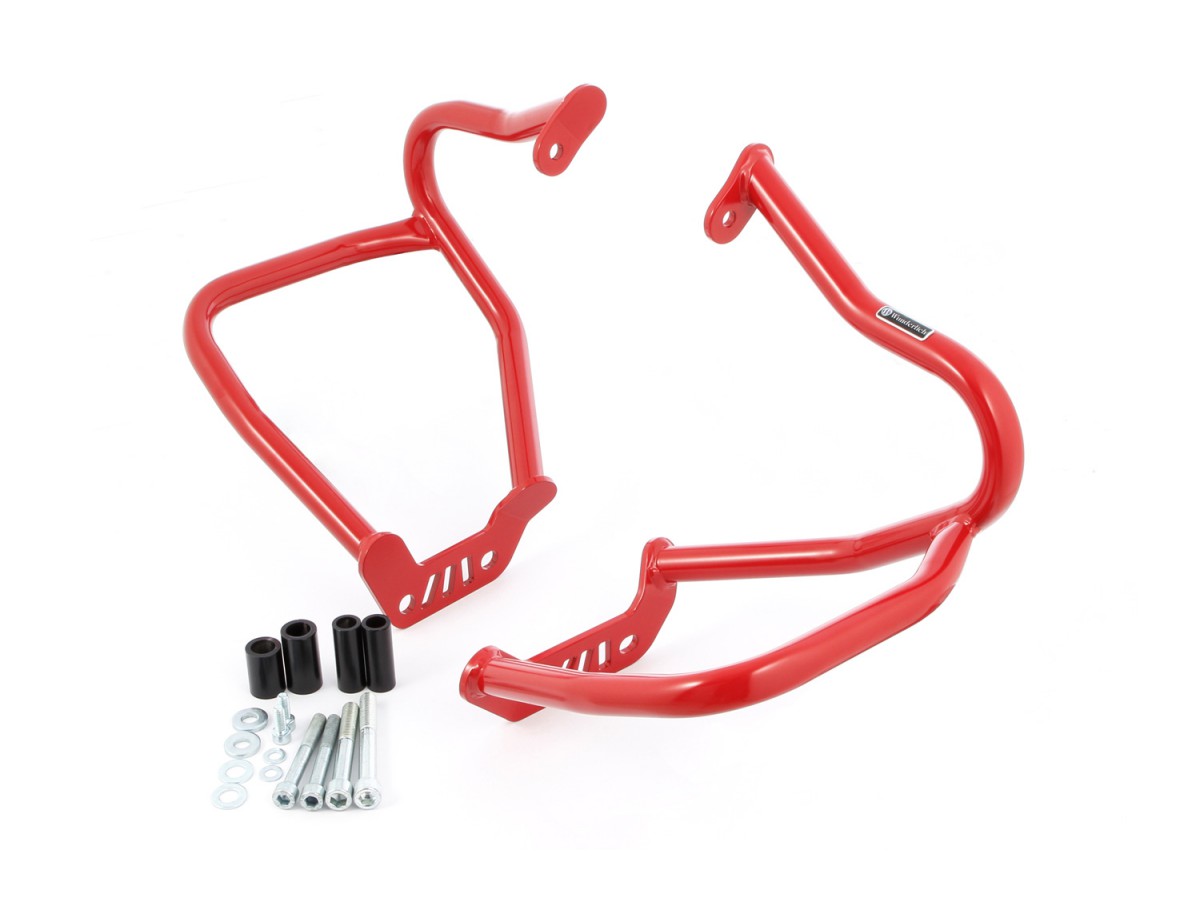 Ich kompaktowa geometria gwarantuje skuteczną ochronę cylindrów, głowic i pokryw zaworów, nie ograniczając przy tym prześwitu ani kąta złożenia motocykla.