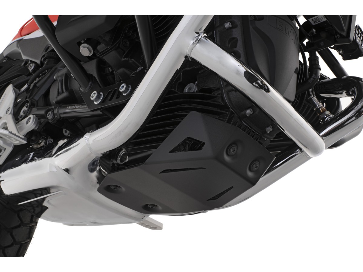 Jednoczęściowa aluminiowa osłona silnika PURE w stylistyce Edge-Design zapewnia pełną ochronę miski olejowej i korpusu silnika.