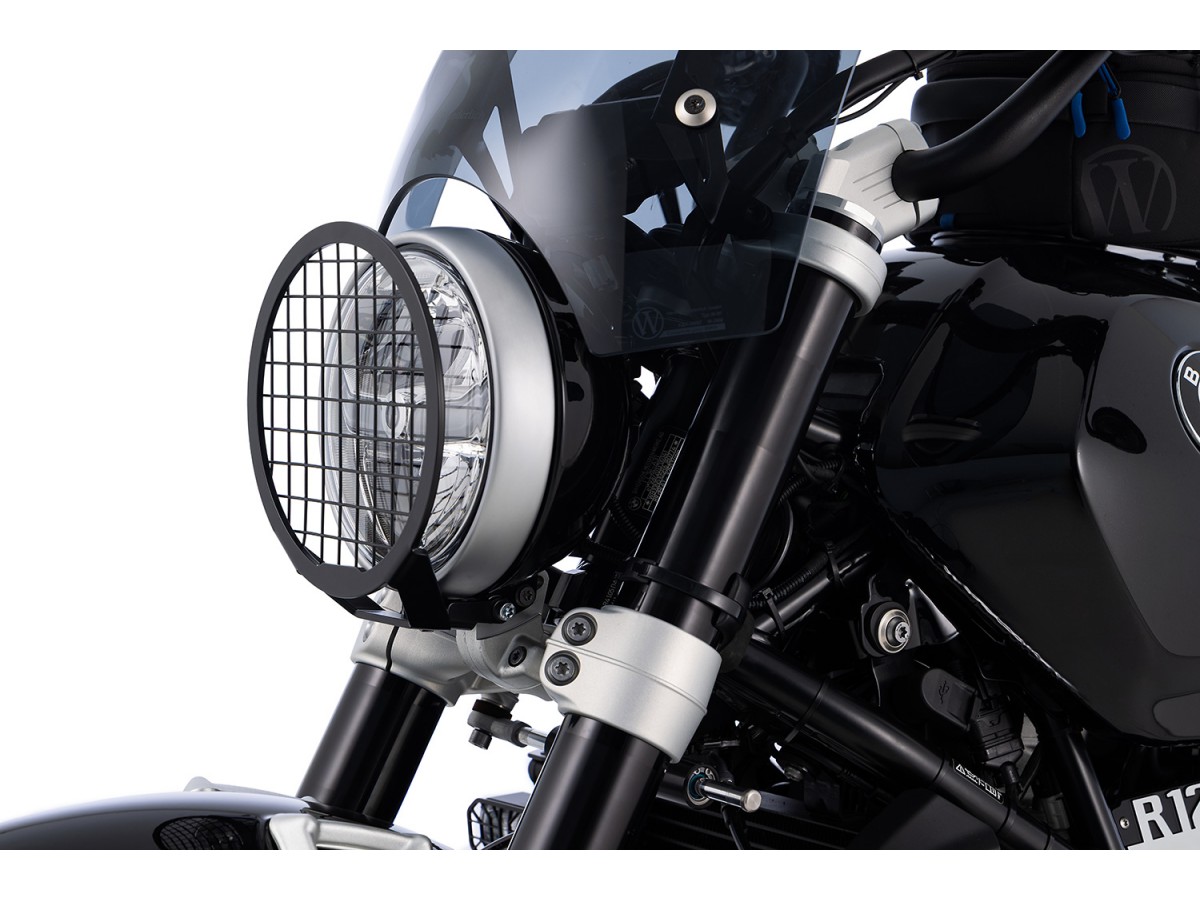 Wunderlich osłona reflektora z kratką do BMW R 12 i R 12 nineT – zmniejsza ryzyko uszkodzenia wysokiej jakości, klasycznego, okrągłego reflektora przez kamienie, odłamki lub gałęzie