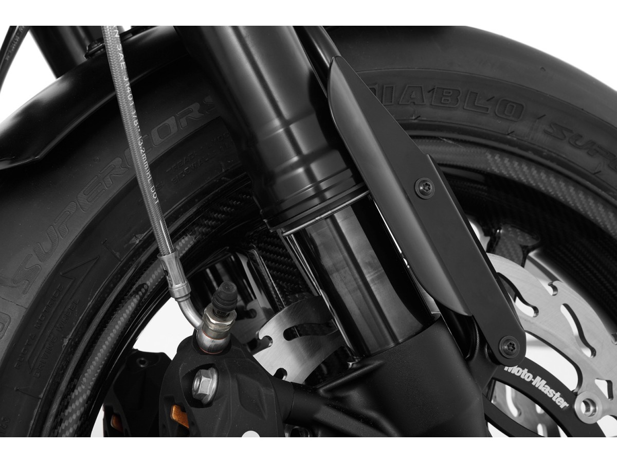 Dlatego opracowaliśmy eleganckie osłony rur widelca, które nie tylko zasłaniają te punkty mocowania, ale również doskonale się prezentują. Dodatkowo osłony te chronią dolne golenie przed uszkodzeniami spowodowanymi uderzeniami kamieni.