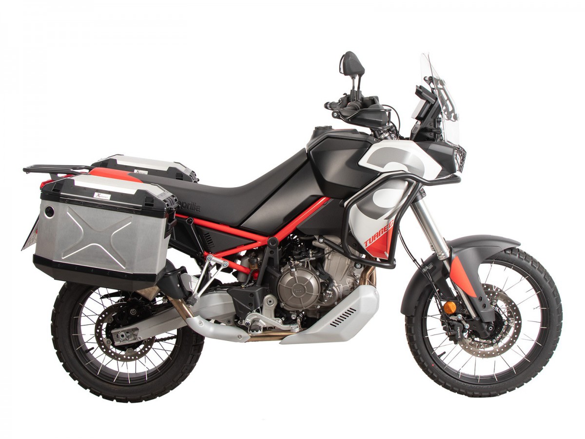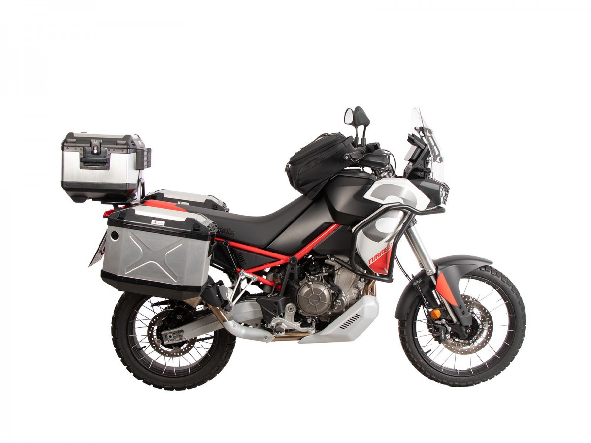 Wycięcie na bagażnik boczny w kolorze czarnym, w tym srebrne kufry boczne Xplorer do Aprilia Tuareg (2025-)