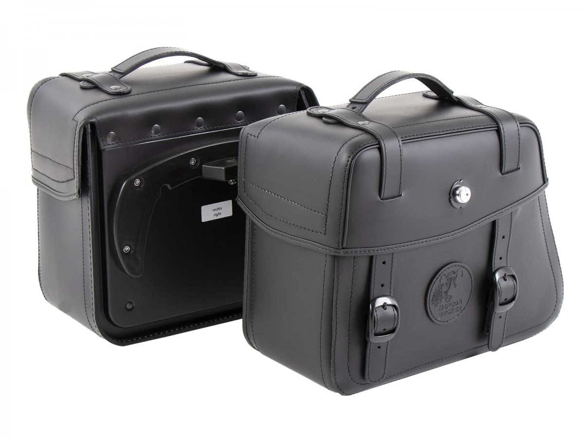 Dzięki swojemu dynamicznemu, ponadczasowemu wyglądowi, te sakwy Hepco&Becker wzbogacą każdego choppera. Nasza kolekcja skórzanych sakw jest wykonana z gładkiej, czystej skóry bydlęcej o grubości 3-4 mm z czarnym barwnikiem anilinowym. Bardzo mocne, odporne na rozdarcia szwy zapewniają najlepszą stabilność i długą żywotność. Wszystkie nasze sakwy są produkowane specjalnie dla nas w naszym tradycyjnym warsztacie rzemieślniczym. Torby zachowują swój kształt wyjątkowo dobrze dzięki ukrytemu wzmocnieniu kształtu i podwójnej tylnej ściance z tworzywa sztucznego - bez wypadania, bez trzepotania. Tylko do uchwytu sakwy C-bow! Zamykane skórzane sakwy do bagażników C-bow W zestawie podpórka C-Bow na tylnej ścianie torby W zestawie klucz i cylinder - potrzebujesz tylko tych sakw i konkretnego modelu bagażnika C-Bow. Nie potrzebujesz żadnych innych adapterów. Grubość skóry bydlęcej 3-4 mm Zalecane obciążenie: 5 kg na stronę (sprawdź informacje dotyczące konkretnego modelu bagażnika) Nie pasuje do bagażnika rurowego; Tylko do bagażnika C-BowSolidna tylna ściana wykonana z tworzywa ABSGarbowanie zgodnie z surowymi normami ochrony środowiskaSkóra pochodząca z europejskiej hodowliNajwyższa jakość obróbki