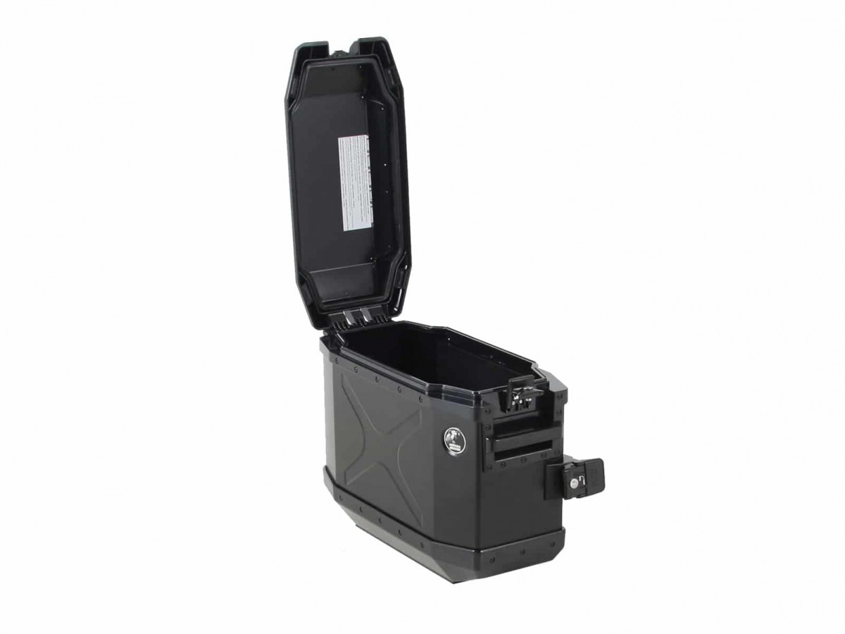 Nowoczesny, współczesny design (firmy Target Design) wykonany z niezwykle wytrzymałego połączenia anodowanej płyty aluminiowej i wysoce odpornego na uderzenia tworzywa sztucznego. To połączenie designu i funkcjonalności idealnie wpisuje się w ducha nowoczesności wielu entuzjastów motocykli. Dzięki anodowanej płycie aluminiowej o grubości 1,5 mm i wytrzymałym elementom z tworzywa sztucznego, kufer ten z łatwością pochłania uderzenia i wibracje. Anodowane lub pokryte tworzywem sztucznym aluminium skutecznie zapobiega nieestetycznemu zużyciu aluminium. Kufer Hepco&Becker Xplorer charakteryzuje się wysokiej jakości strukturą powierzchni. Pokrywa otwiera się pod kątem 90°. Kufer gwarantuje wodoodporność. Wersja 30-litrowa nie mieści kasku. Wersja 40-litrowa mieści 1 kask. Wersja czarna, malowana proszkowo. Wersja srebrna, anodowana. W zestawie zamki i blokada na kluczyk. Pasuje do wszystkich bagażników bocznych HEPCO&BECKER. Zalecane obciążenie: 10 kg (prosimy o sprawdzenie ograniczeń konkretnego modelu bagażnika bocznego). Dostępne akcesoria, takie jak sakwy wewnętrzne lub reling.
