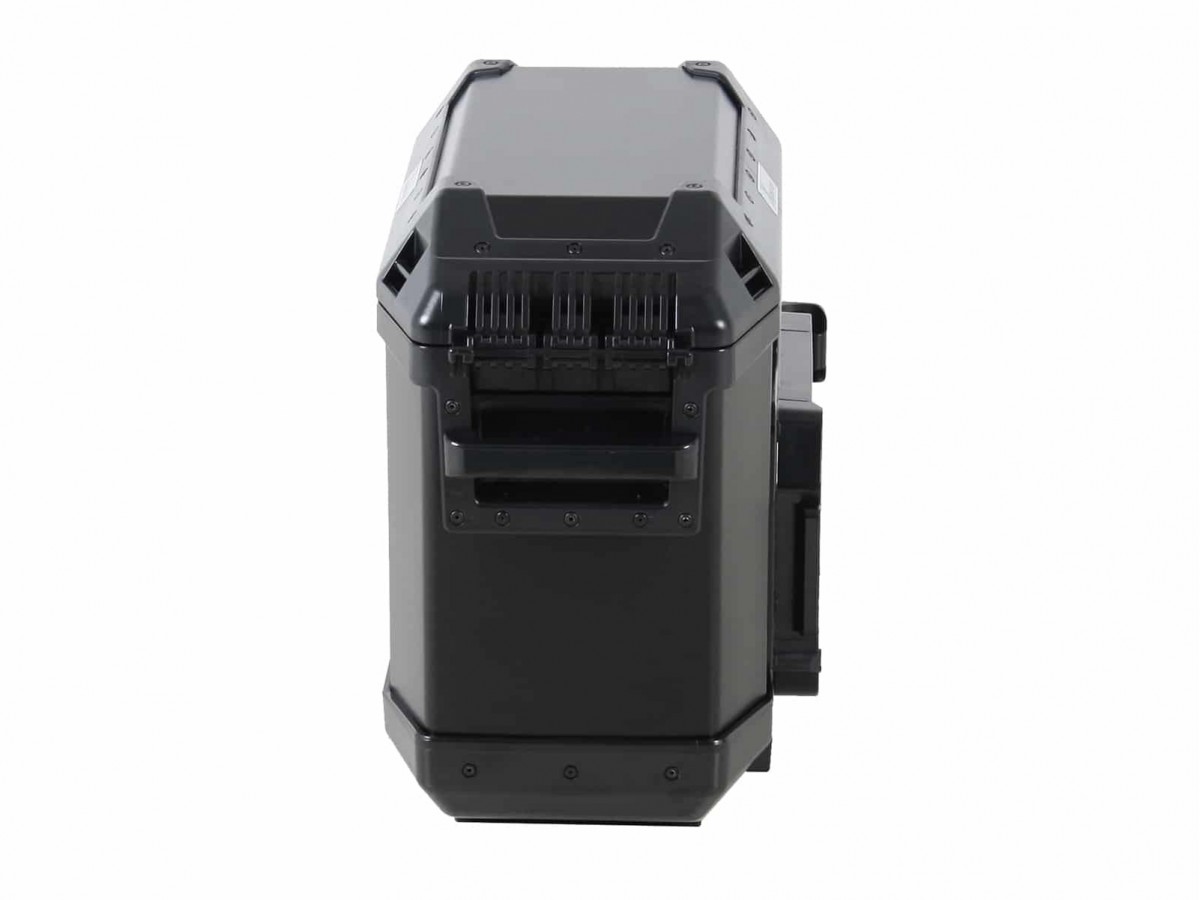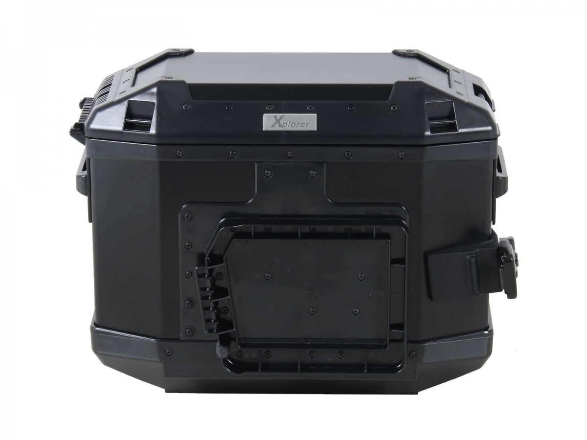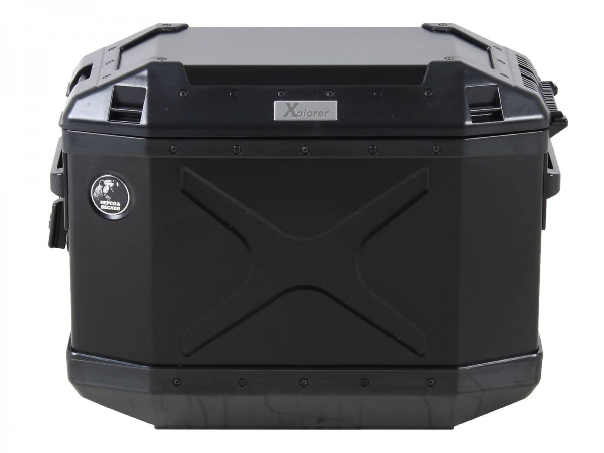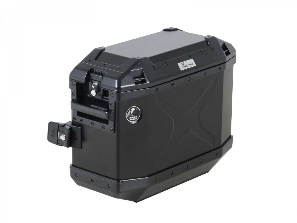Nowoczesny, współczesny design (firmy Target Design) wykonany z niezwykle wytrzymałego połączenia anodowanej płyty aluminiowej i wysoce odpornego na uderzenia tworzywa sztucznego. To połączenie designu i funkcjonalności idealnie wpisuje się w ducha nowoczesności wielu entuzjastów motocykli. Dzięki anodowanej płycie aluminiowej o grubości 1,5 mm i wytrzymałym elementom z tworzywa sztucznego, kufer ten z łatwością pochłania uderzenia i wibracje. Anodowane lub pokryte tworzywem sztucznym aluminium skutecznie zapobiega nieestetycznemu zużyciu aluminium. Kufer Hepco&Becker Xplorer charakteryzuje się wysokiej jakości strukturą powierzchni. Pokrywa otwiera się pod kątem 90°. Kufer gwarantuje wodoodporność. Wersja 30-litrowa nie mieści kasku. Wersja 40-litrowa mieści 1 kask. Wersja czarna, malowana proszkowo. Wersja srebrna, anodowana. W zestawie zamki i blokada na kluczyk. Pasuje do wszystkich bagażników bocznych HEPCO&BECKER. Zalecane obciążenie: 10 kg (prosimy o sprawdzenie ograniczeń konkretnego modelu bagażnika bocznego). Dostępne akcesoria, takie jak sakwy wewnętrzne lub reling.