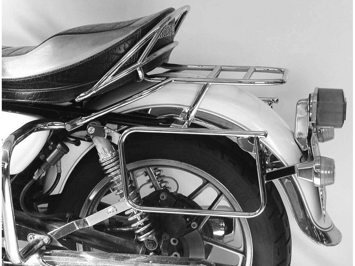 Standardowe bagażniki boczne HEPCO&BECKER są solidnie przykręcone do motocykla. Pasują do nich wszystkie standardowe, twarde kufry bagażowe Hepco&Becker. Kufry mocuje się do bagażnika za pomocą szybkozłączki. W tym celu wymagany jest aluminiowy adapter, który zazwyczaj znajduje się w zestawie z kufrem. (Numer artykułu: 700114) Ten aluminiowy adapter przykręca się do tylnej prawej i lewej strony bagażnika, zapewniając uchwyt na kłódkę bagażową. Bagażniki, przeznaczone do konkretnych modeli, są solidnie wykonane i zapewniają skuteczną ochronę nóg kierowcy lub pasażera, nawet w razie upadku. Boczne bagażniki Hepco&Becker można zazwyczaj bez problemu łączyć z rurowym stelażem centralnym lub innymi systemami bagażników tylnych naszej firmy. Proszę zapoznać się z instrukcją montażu. Konstrukcja z rur stalowych WYPRODUKOWANO W NIEMCZECH Mocno przykręcone do motocykla światła sygnalizacyjne zazwyczaj pozostają w oryginalnej pozycji, ale czasami trzeba je przesunąć (proszę zapoznać się z instrukcją montażu produktu). Zalecane obciążenie: 10 kg na kufer boczny (proszę zapoznać się z instrukcjami producenta motocykla dotyczącymi konkretnego modelu lub instrukcjami w instrukcji montażu). Prawa + lewa strona wraz z zestawem montażowym i instrukcją. Bagażniki nie wymagają ABE ani rejestracji w Niemczech.