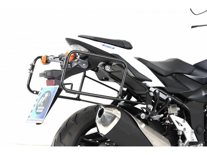 Doskonałe dopasowanie – każdy kufer boczny Hepco&Becker Lock-it jest precyzyjnie dopasowany do konkretnego typu motocykla. Zapewnia to wysoką precyzję montażu. Wykonany jest ze stalowych rur i specjalnie wykonanych elementów laserowych, które są dodatkowo wzmocnione w miejscach narażonych na duże obciążenia. Jakość kufrów bocznych Lock-it została już wielokrotnie potwierdzona w branżowych czasopismach. Kufry można zamontować i zdemontować w ciągu kilku sekund. Wystarczy poluzować śruby mocujące Lock-it o ćwierć obrotu, a boczne elementy można zdemontować do tyłu lub na boki. Opcjonalnie, jako zabezpieczenie antykradzieżowe, można zabezpieczyć kufer naszymi śrubami Lock-it (numer artykułu: 151050). Wszystkie kufry zamykane są za pomocą szybkozłączki. Do tego celu potrzebne są aluminiowe adaptery (numer artykułu 700114), które zazwyczaj znajdują się w zestawie z kuframi bocznymi. Aluminiowe adaptery przykręcane są do tylnej prawej i lewej strony bagażnika, a następnie umożliwiają zamocowanie zamków walizki.Do wszystkich kufrów bocznych / twardych / aluminiowych Hepco & BeckerSolidna konstrukcjaSzybki demontaż, pozostawiając na motocyklu tylko dyskretne małe zaczepyWysokiej jakości wykończenie powierzchniProsty montaż, zapoznaj się z załączoną instrukcją montażuZakres dostawy: prawy + lewy wraz z materiałem montażowym i instrukcją montażuSpójrz na instrukcję konkretnego pojazdu lub instrukcję montażuZalecane obciążenie: 10 kg na kufer boczny