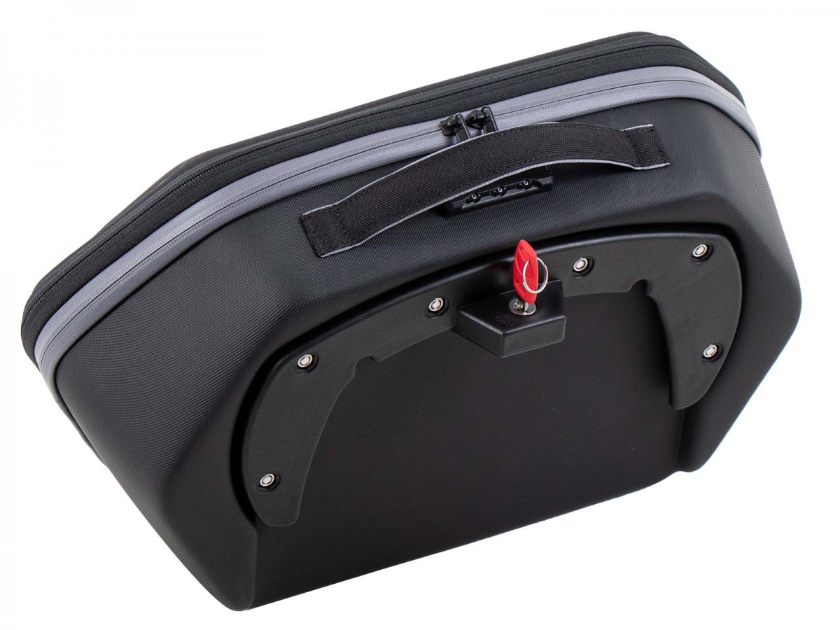 Zakres dostawy: prawa + lewa + klucz i cylinder zamka Torby boczne wykonane z głęboko tłoczonego materiału EVA Można zamontować na bagażniku bocznym Hepco & Becker C-Bow (nie jest dołączony, należy zamówić osobno / w zależności od modelu) zamykany na bagażniku C-Bow, w tym klucz i cylinder zamka Zintegrowany zamek szyfrowy do zamka Bardzo niska waga, pomimo stabilnej konstrukcji Skorupa pokrywy pokryta odpornym na ścieranie poliestrem 1200D Ściana tylna pokryta poliuretanem, odporna na zabrudzenia Zintegrowana, wodoodporna torba wewnętrzna wykonana z poliestru (wyjmowana) Odblaskowe aplikacje, w tym uchwyt Zalecane obciążenie: 3-5 kg ​​na torbę (proszę również zwrócić uwagę na informacje producenta dotyczące konkretnego pojazdu i informacje na temat systemu transportowego dotyczącego konkretnego pojazdu) Zalecana maks. prędkość 130 km/h (proszę również zwrócić uwagę na informacje producenta dotyczące konkretnego pojazdu i informacje na temat systemu transportowego dotyczącego konkretnego pojazdu) Systemy bagażowe zazwyczaj nie wymagają ABE ani wejścia
