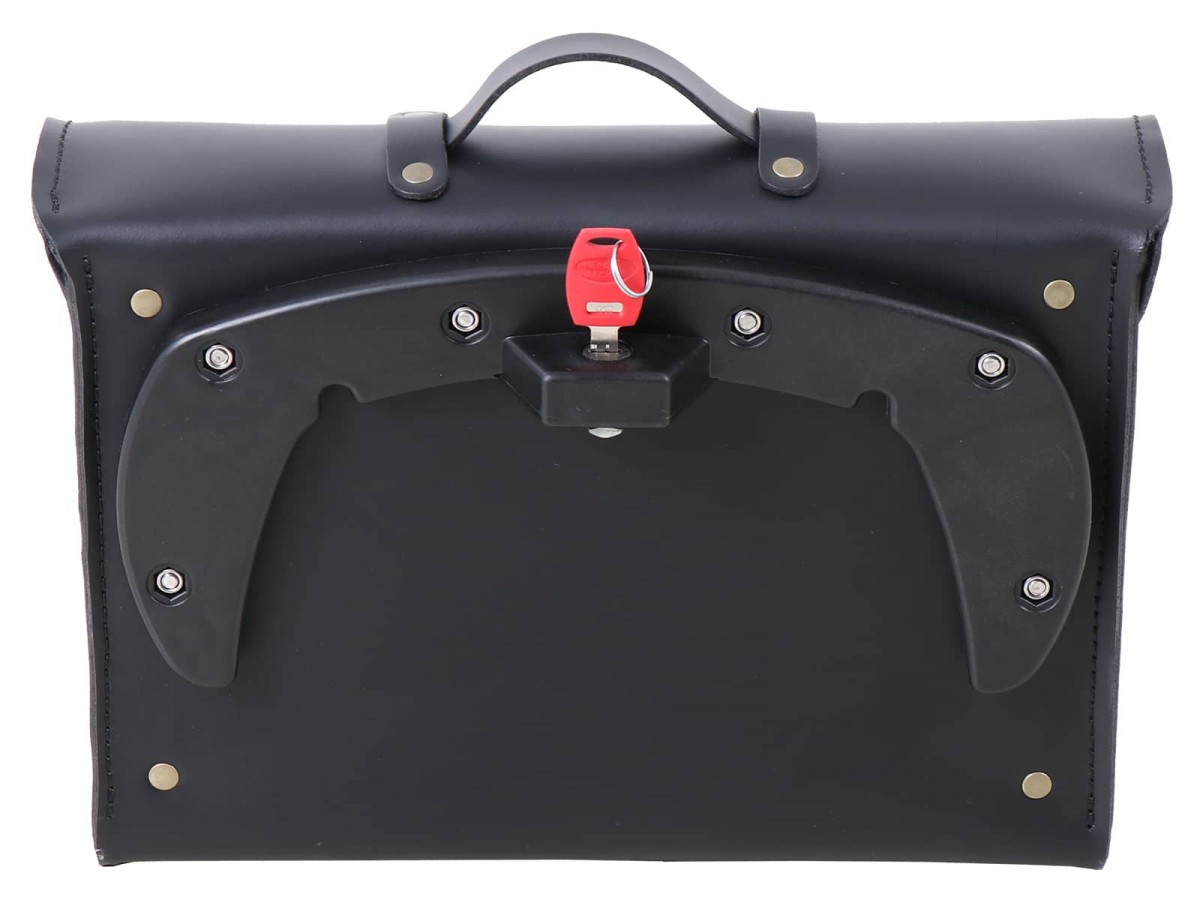 Jeśli lubisz styl retro, pokochasz naszą nową aktówkę! Przekonuje modnym stylem college'u. Wnętrze oferuje miejsce na wszystkie ważne rzeczy: zarówno 13-calowy notatnik, jak i dokumenty A4 można schować w dużej komorze głównej. Idealna również do noszenia jako torba na ramię, ponieważ można ją opcjonalnie połączyć z paskiem na ramię. Wykonana z 3 mm grubej skóry końskiej. Do przymocowania do bocznego bagażnika Hepco&Becker C-Bow, zamykana na klucz. W zestawie cylinder zamka i klucz.