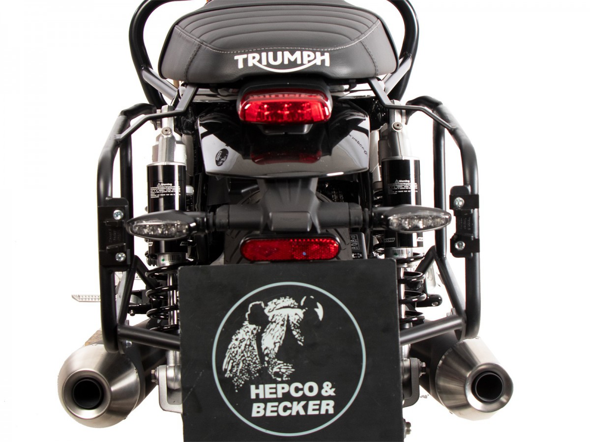 Standardowe bagażniki boczne HEPCO&BECKER są solidnie przykręcone do motocykla. Pasują do nich wszystkie standardowe, twarde kufry bagażowe Hepco&Becker. Kufry mocuje się do bagażnika za pomocą szybkozłączki. W tym celu wymagany jest aluminiowy adapter, który zazwyczaj znajduje się w zestawie z kufrem. (Numer artykułu: 700114) Ten aluminiowy adapter przykręca się do tylnej prawej i lewej strony bagażnika, zapewniając uchwyt na kłódkę bagażową. Bagażniki, przeznaczone do konkretnych modeli, są solidnie wykonane i zapewniają skuteczną ochronę nóg kierowcy lub pasażera, nawet w razie upadku. Boczne bagażniki Hepco&Becker można zazwyczaj bez problemu łączyć z rurowym stelażem centralnym lub innymi systemami bagażników tylnych naszej firmy. Proszę zapoznać się z instrukcją montażu. Konstrukcja z rur stalowych WYPRODUKOWANO W NIEMCZECH Mocno przykręcone do motocykla światła sygnalizacyjne zazwyczaj pozostają w oryginalnej pozycji, ale czasami trzeba je przesunąć (proszę zapoznać się z instrukcją montażu produktu). Zalecane obciążenie: 10 kg na kufer boczny (proszę zapoznać się z instrukcjami producenta motocykla dotyczącymi konkretnego modelu lub instrukcjami w instrukcji montażu). Prawa + lewa strona wraz z zestawem montażowym i instrukcją. Bagażniki nie wymagają ABE ani rejestracji w Niemczech.