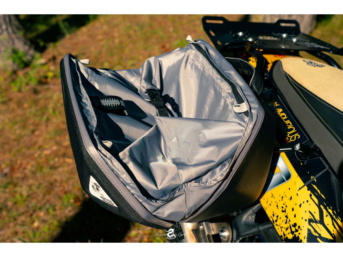Ta nowa miękka torba ma wiele wspólnego z ostrygą - stąd jej nazwa. W porównaniu do innych miękkich toreb, wizualnie uderza swoim świeżym, oryginalnym designem. Jest wykonana z wytrzymałego, wysoce odpornego materiału EVA, który zapewnia torbie Royster stabilność wymiarową. Przód pokryty jest odpornym na ścieranie poliestrem 1200D, który pasuje do wykończenia powierzchni w istniejącej kolekcji Hepco&Becker. Tylna ściana pokryta jest poliuretanem. Zwiększa to odporność na zabrudzenia i ułatwia czyszczenie. Ich niewielka waga sprawia, że ​​są łatwe w obsłudze i umożliwiają bezproblemowe przenoszenie dzięki praktycznemu zagłębionemu uchwytowi. Nośnik C-Bow firmy Hepco&Becker umożliwia zabezpieczenie przed kradzieżą, aby chronić tę atrakcyjną miękką torbę przed lepkimi palcami. Waga: 1,5 kg Zalecane obciążenie: 5 kg / każda strona (sprawdź informacje o konkretnym modelu nosidełka w celu uzyskania informacji o ograniczeniach) Dostawa: lewa strona + prawa strona + klucze i zamki