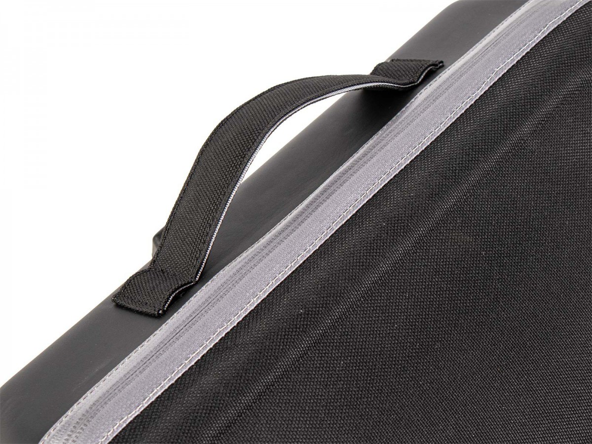 Ta nowa miękka torba ma wiele wspólnego z ostrygą – stąd jej nazwa. W porównaniu z innymi miękkimi torbami, zachwyca świeżym, oryginalnym designem. Wykonana jest z wytrzymałego, niezwykle odpornego materiału EVA, który zapewnia torbie Royster stabilność wymiarową. Przód pokryty jest odpornym na ścieranie poliestrem 1200D, który pasuje do wykończenia powierzchni w istniejącej kolekcji Hepco&Becker. Tylna ściana pokryta jest poliuretanem. Zwiększa to odporność na zabrudzenia i ułatwia czyszczenie. Niska waga ułatwia przenoszenie i pozwala na bezproblemowe przenoszenie dzięki praktycznemu, zagłębionemu uchwytowi. Nosidełko C-Bow firmy Hepco&Becker umożliwia zabezpieczenie przed kradzieżą, chroniąc tę ​​atrakcyjną miękką torbę przed przyklejeniem palców. Waga: 1,5 kg, zalecane obciążenie: 5 kg / każda strona (prosimy o sprawdzenie informacji o konkretnym modelu nosidełka w celu uzyskania informacji o ograniczeniach), dostawa: lewa strona + prawa strona + klucze i zamki.
