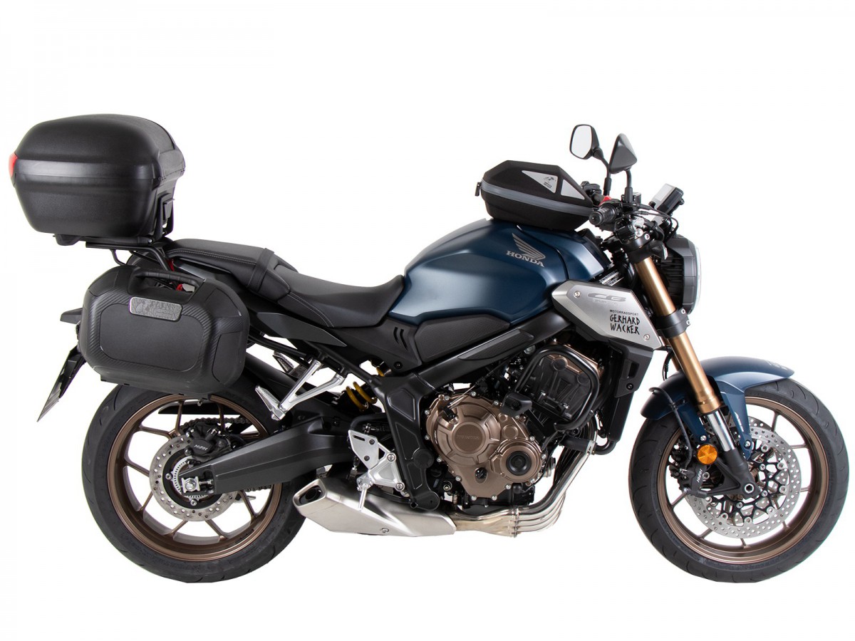 Hepco&Becker Easyrack został zaprojektowany specjalnie do naszych kufrów centralnych. Jako następca bagażnika wykonanego z rur okrągłych, Easyrack kontynuuje tradycję i jest oferowany do motocykli nowszych generacji. Oznacza to, że można zamontować niemal każdy kufer centralny Hepco&Becker, zarówno aluminiowy, jak i plastikowy, i swobodnie wybierać spośród całej linii produktów. Każdy Easyrack jest zaprojektowany dla konkretnego modelu i idealnie wpasowuje się w ogólny wygląd motocykla. Wykonanie z wysokiej jakości aluminium zapewnia Easyrack dużą wytrzymałość i elegancki wygląd. Konstrukcja Easyrack integruje dodatkowe punkty mocowania pasów bagażowych do mocowania rolek bagażu itp. Zalecane obciążenie: 5 kg do kufra centralnego (prosimy o sprawdzenie instrukcji obsługi i informacji u producenta motocykla). Dostawa: rama główna do konkretnego modelu motocykla, adapter Easyrack, zestaw montażowy, instrukcja obsługi. Do montażu kufra centralnego Hepco&Becker nie są wymagane żadne dodatkowe adaptery. Uwaga: kufer centralny Hepco&Becker z uniwersalną plastikową płytą adaptera i kufer centralny Orbit nie pasują. Tylko standardowe kufry górne Hepco&Becker z metalowym wykończeniem na spodzie można w większości przypadków łączyć z bocznym bagażnikiem C-Bow lub normalnym twardym bocznym bagażnikiem na bagaż: Sprawdź instrukcję obsługi lub informacje dotyczące konkretnego modelu roweru. Różnica w stosunku do kufra górnego Alurack: pałąk, który można złożyć w Easyrack, stoi sztywno u góry w przypadku Alurack. Specyficzna dla danego modelu roweru rama główna jest w większości taka sama w modelach Alurack i Easyrack.