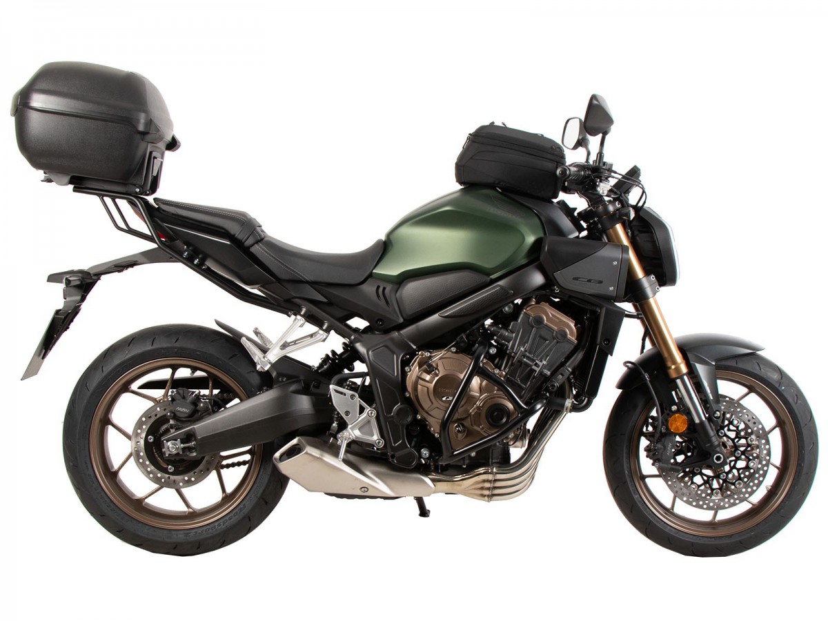 Hepco&Becker Easyrack został zaprojektowany specjalnie do naszych kufrów centralnych. Jako następca bagażnika wykonanego z rur okrągłych, Easyrack kontynuuje tradycję i jest oferowany do motocykli nowszych generacji. Oznacza to, że można zamontować niemal każdy kufer centralny Hepco&Becker, zarówno aluminiowy, jak i plastikowy, i swobodnie wybierać spośród całej linii produktów. Każdy Easyrack jest zaprojektowany dla konkretnego modelu i idealnie wpasowuje się w ogólny wygląd motocykla. Wykonanie z wysokiej jakości aluminium zapewnia Easyrack dużą wytrzymałość i elegancki wygląd. Konstrukcja Easyrack integruje dodatkowe punkty mocowania pasów bagażowych do mocowania rolek bagażu itp. Zalecane obciążenie: 5 kg do kufra centralnego (prosimy o sprawdzenie instrukcji obsługi i informacji u producenta motocykla). Dostawa: rama główna do konkretnego modelu motocykla, adapter Easyrack, zestaw montażowy, instrukcja obsługi. Do montażu kufra centralnego Hepco&Becker nie są wymagane żadne dodatkowe adaptery. Uwaga: kufer centralny Hepco&Becker z uniwersalną plastikową płytą adaptera i kufer centralny Orbit nie pasują. Tylko standardowe kufry górne Hepco&Becker z metalowym wykończeniem na spodzie można w większości przypadków łączyć z bocznym bagażnikiem C-Bow lub normalnym twardym bocznym bagażnikiem na bagaż: Sprawdź instrukcję obsługi lub informacje dotyczące konkretnego modelu roweru. Różnica w stosunku do kufra górnego Alurack: pałąk, który można złożyć w Easyrack, stoi sztywno u góry w przypadku Alurack. Specyficzna dla danego modelu roweru rama główna jest w większości taka sama w modelach Alurack i Easyrack.