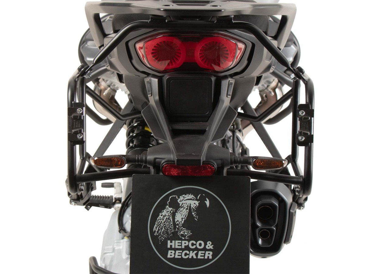 Standardowe bagażniki boczne HEPCO&BECKER są solidnie przykręcone do motocykla. Pasują do nich wszystkie standardowe, twarde kufry bagażowe Hepco&Becker. Kufry mocuje się do bagażnika za pomocą szybkozłączki. W tym celu wymagany jest aluminiowy adapter, który zazwyczaj znajduje się w zestawie z kufrem. (Numer artykułu: 700114) Ten aluminiowy adapter przykręca się do tylnej prawej i lewej strony bagażnika, zapewniając uchwyt na kłódkę bagażową. Bagażniki, przeznaczone do konkretnych modeli, są solidnie wykonane i zapewniają skuteczną ochronę nóg kierowcy lub pasażera, nawet w razie upadku. Boczne bagażniki Hepco&Becker można zazwyczaj bez problemu łączyć z rurowym stelażem centralnym lub innymi systemami bagażników tylnych naszej firmy. Proszę zapoznać się z instrukcją montażu. Konstrukcja z rur stalowych WYPRODUKOWANO W NIEMCZECH Mocno przykręcone do motocykla światła sygnalizacyjne zazwyczaj pozostają w oryginalnej pozycji, ale czasami trzeba je przesunąć (proszę zapoznać się z instrukcją montażu produktu). Zalecane obciążenie: 10 kg na kufer boczny (proszę zapoznać się z instrukcjami producenta motocykla dotyczącymi konkretnego modelu lub instrukcjami w instrukcji montażu). Prawa + lewa strona wraz z zestawem montażowym i instrukcją. Bagażniki nie wymagają ABE ani rejestracji w Niemczech.