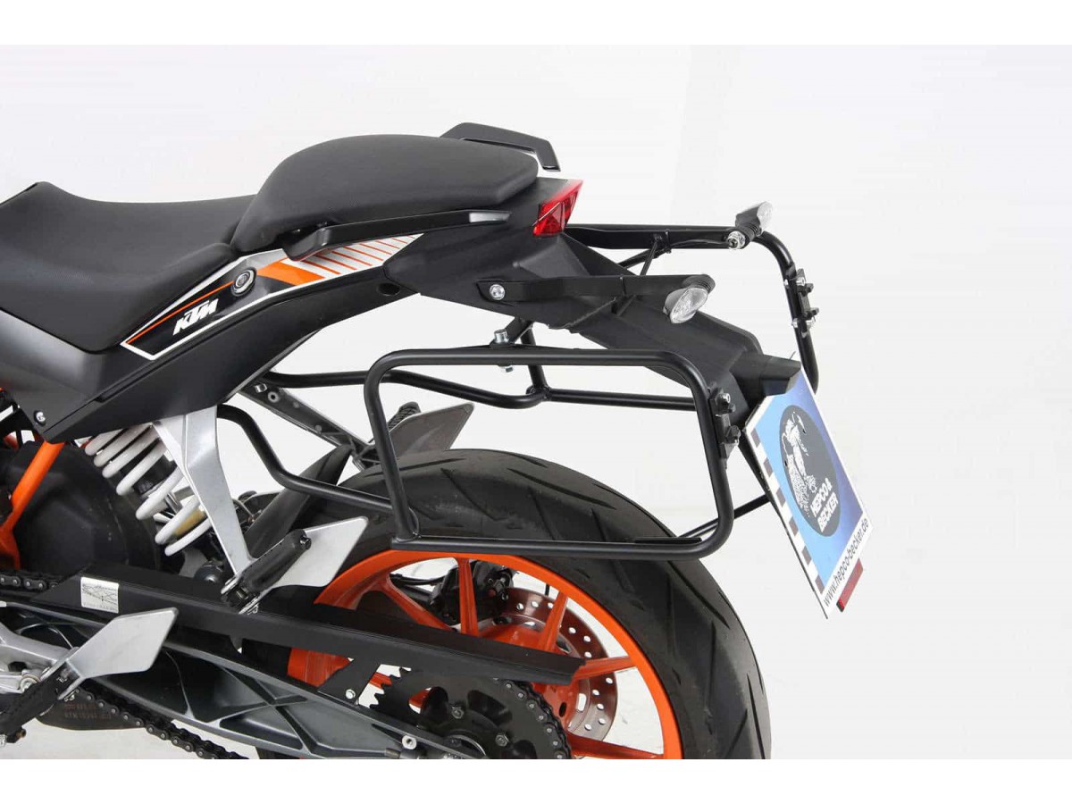 Standardowe bagażniki boczne HEPCO&BECKER są solidnie przykręcone do motocykla. Pasują do nich wszystkie standardowe, twarde kufry bagażowe Hepco&Becker. Kufry mocuje się do bagażnika za pomocą szybkozłączki. W tym celu wymagany jest aluminiowy adapter, który zazwyczaj znajduje się w zestawie z kufrem. (Numer artykułu: 700114) Ten aluminiowy adapter przykręca się do tylnej prawej i lewej strony bagażnika, zapewniając uchwyt na kłódkę bagażową. Bagażniki, przeznaczone do konkretnych modeli, są solidnie wykonane i zapewniają skuteczną ochronę nóg kierowcy lub pasażera, nawet w razie upadku. Boczne bagażniki Hepco&Becker można zazwyczaj bez problemu łączyć z rurowym stelażem centralnym lub innymi systemami bagażników tylnych naszej firmy. Proszę zapoznać się z instrukcją montażu. Konstrukcja z rur stalowych WYPRODUKOWANO W NIEMCZECH Mocno przykręcone do motocykla światła sygnalizacyjne zazwyczaj pozostają w oryginalnej pozycji, ale czasami trzeba je przesunąć (proszę zapoznać się z instrukcją montażu produktu). Zalecane obciążenie: 10 kg na kufer boczny (proszę zapoznać się z instrukcjami producenta motocykla dotyczącymi konkretnego modelu lub instrukcjami w instrukcji montażu). Prawa + lewa strona wraz z zestawem montażowym i instrukcją. Bagażniki nie wymagają ABE ani rejestracji w Niemczech.