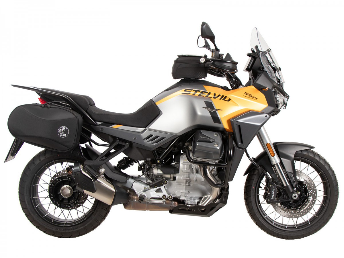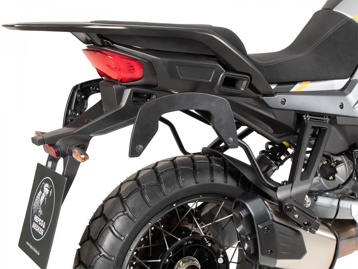 Stelaż boczny C-Bow do Moto Guzzi Stelvio (2024-). Uchwyt na torby C-Bow jest przeznaczony do różnych toreb Hepco&Becker, w zależności od modelu motocykla. Torby miękkie do sportowych, dynamicznych motocykli oraz sakwy do chopperów i cruiserów można przymocować do motocykla za pomocą uchwytu C-Bow. Jego elegancki, dyskretny design idealnie wpasowuje się w ogólną linię pojazdu. Naturalnie, utrzymuje sakwy z dala od rozgrzanego tłumika. Nowoczesna technologia C-Bow pozwala na proste i łatwe przymocowanie odpowiednich toreb do C-Bow jednym kliknięciem, co zapewnia ich solidne zablokowanie, co zniechęca do kradzieży. Torby są bezpiecznie przymocowane do motocykla i pozostają na swoim miejscu nawet po załadowaniu. W wielu modelach kierunkowskazy pozostają w swojej pierwotnej pozycji. Więcej informacji można znaleźć w instrukcji obsługi. Specjalny bagażnik tylko do toreb i kufrów Hepco&Becker C-Bow Standardowy twardy bagaż Hepco&Becker nie pasuje do toreb Krauser K-Wing Wysokiej jakości wykończenie powierzchni Dostawa: prawa strona, lewa strona, zestaw montażowy, instrukcja Łatwy montaż Zwykle można łączyć z bagażnikami na kufry górne, sissybar lub bagażnikami solo (sprawdź instrukcję i informacje dotyczące konkretnego modelu motocykla) Powiększenie tylnego bagażnika może ograniczyć funkcjonalność toreb Zaprojektowane dla fabrycznego stanu maszyny. Nie testowano z akcesoriami takimi jak wydech, uchwyt tablicy rejestracyjnej lub inne kierunkowskazy. Używając akcesoriów innych firm, upewnij się, że torby są zawsze trzymane w odpowiedniej odległości od wydechu i że kierunkowskazy mają odpowiedni kąt wiązki. Strumień spalin nie może być skierowany na torby.