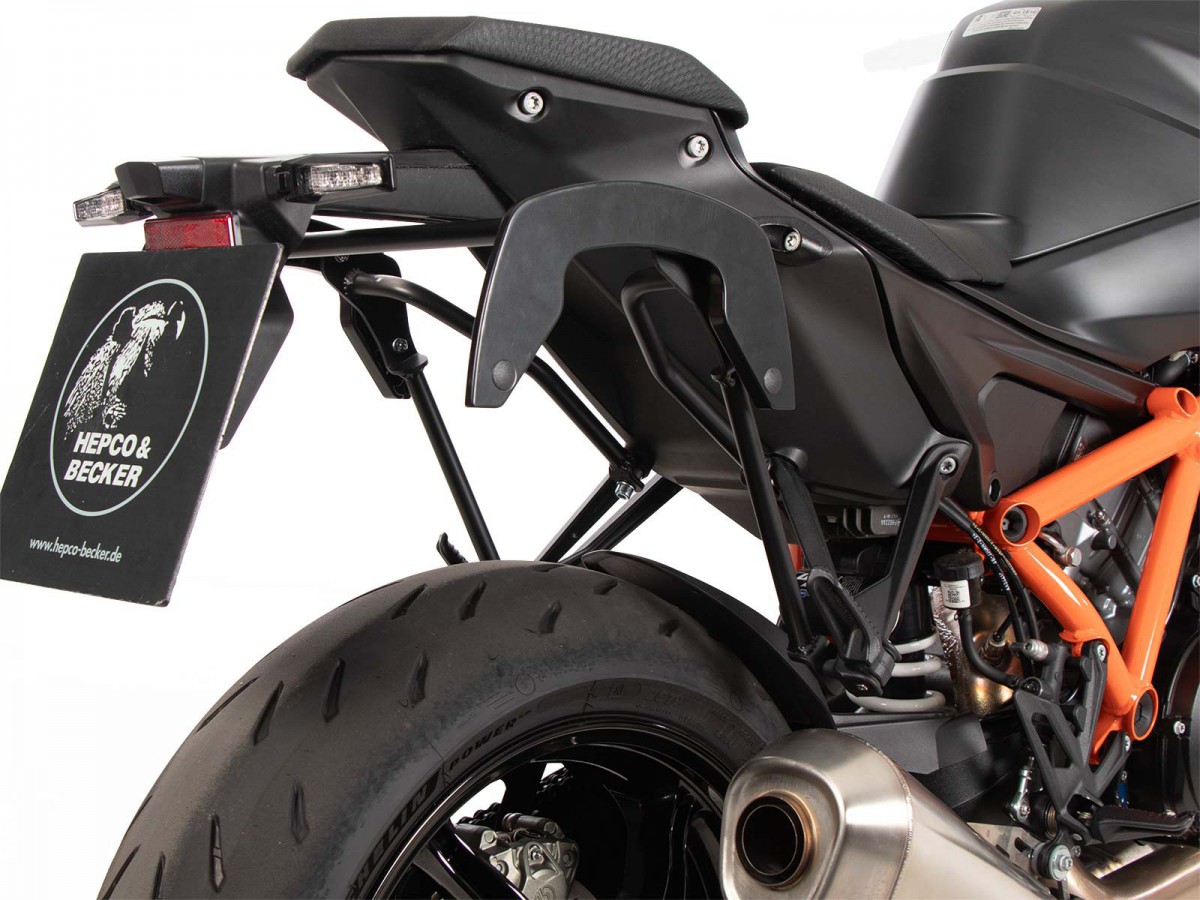 Uchwyt na kufry C-Bow jest przeznaczony do różnych kufrów Hepco&Becker, w zależności od modelu motocykla. Za pomocą uchwytu C-Bow można przymocować miękkie sakwy do sportowych, dynamicznych motocykli oraz sakwy do chopperów i cruiserów. Jego elegancki, dyskretny design idealnie wpasowuje się w ogólną linię pojazdu. Naturalnie, sakwy są bezpiecznie trzymane z dala od rozgrzanego tłumika. Nowoczesna technologia C-Bow pozwala na proste i łatwe przymocowanie odpowiednich kufrów do C-Bow jednym kliknięciem, co skutecznie je blokuje, uniemożliwiając kradzież. Kufry są bezpiecznie przymocowane do motocykla i pozostają na swoim miejscu nawet po załadowaniu. W wielu modelach kierunkowskazy pozostają w swojej pierwotnej pozycji. Proszę sprawdzić instrukcję, aby uzyskać więcej informacji. Specjalny bagażnik przeznaczony wyłącznie do toreb i pudeł Hepco&Becker C-Bow. Standardowy twardy bagażnik Hepco&Becker nie pasuje. Twardy bagażnik Krauser K-Wing nie pasuje. Łatwy montaż. Dostawa: prawa strona, lewa strona, zestaw montażowy, instrukcja. Zalecane obciążenie: 5 kg na torbę (więcej informacji można znaleźć w instrukcji lub u producenta motocykla). Można go łączyć głównie z bagażnikiem na kufer centralny, sissybar lub innym tylnym bagażnikiem (więcej informacji można znaleźć w instrukcji lub u producenta konkretnego modelu motocykla). Powiększenie tylnego bagażnika może ograniczyć funkcjonalność toreb.
